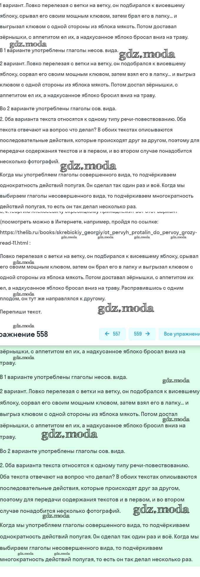ОТВЕТ на задание № 558 Учебник по Русскому языку 6 класс Разумовская Вертикаль