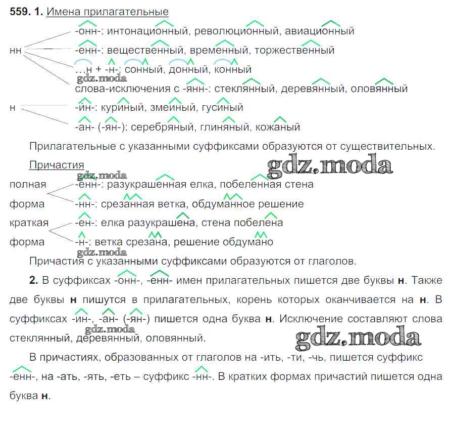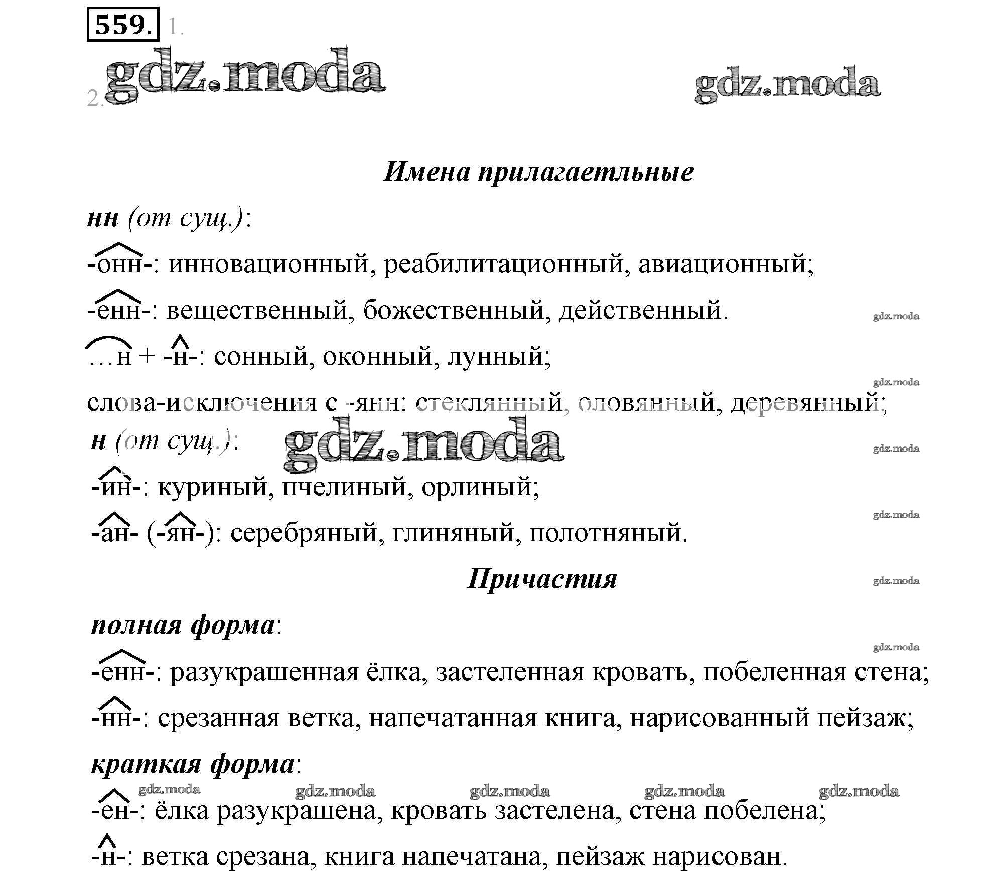 ОТВЕТ на задание № 559 Учебник по Русскому языку 6 класс Разумовская Вертикаль