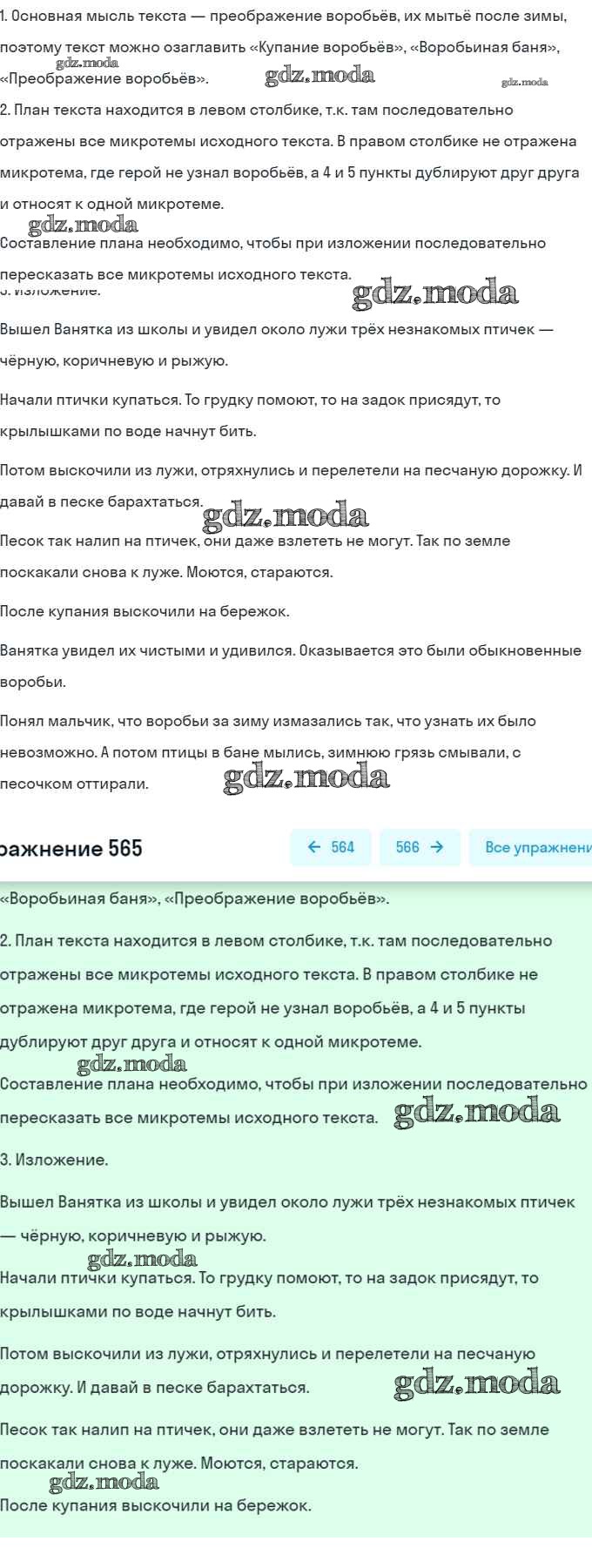 ОТВЕТ на задание № 565 Учебник по Русскому языку 6 класс Разумовская Вертикаль