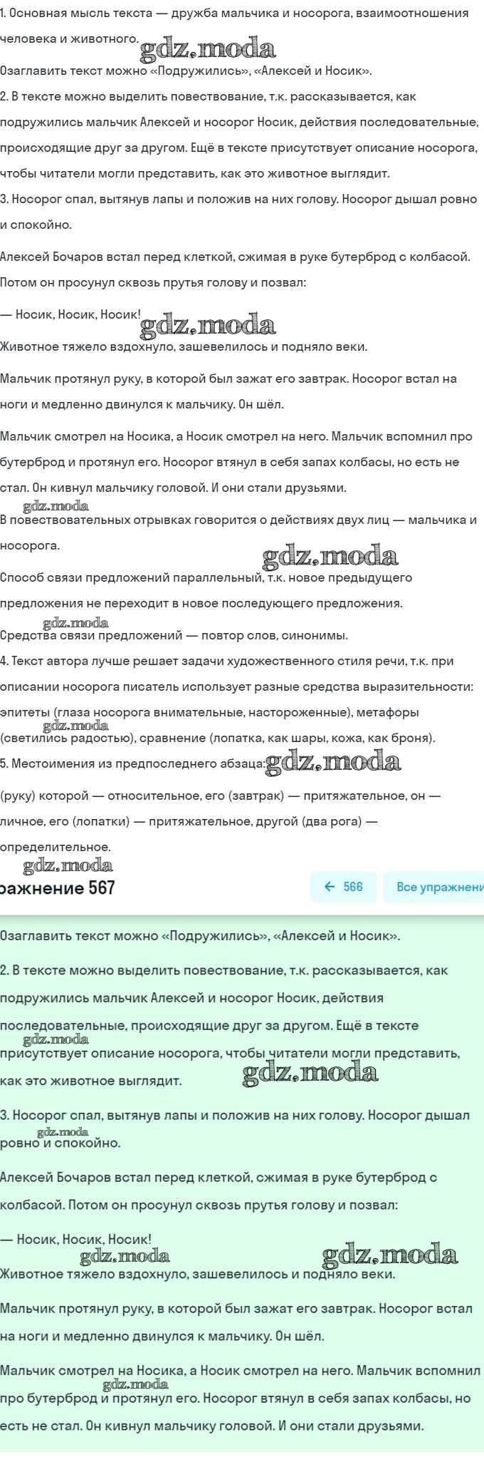 ОТВЕТ на задание № 567 Учебник по Русскому языку 6 класс Разумовская Вертикаль