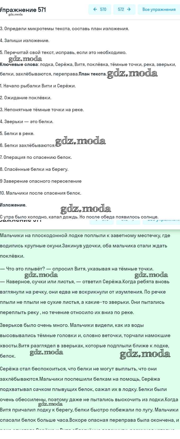 ОТВЕТ на задание № 571 Учебник по Русскому языку 6 класс Разумовская Вертикаль
