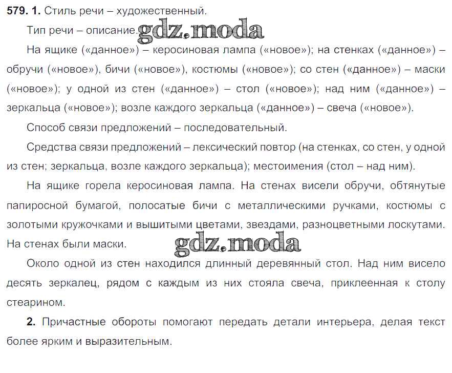 ОТВЕТ на задание № 579 Учебник по Русскому языку 6 класс Разумовская Вертикаль