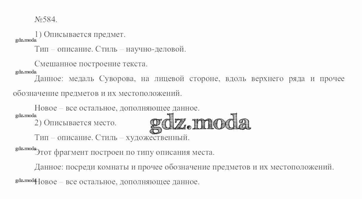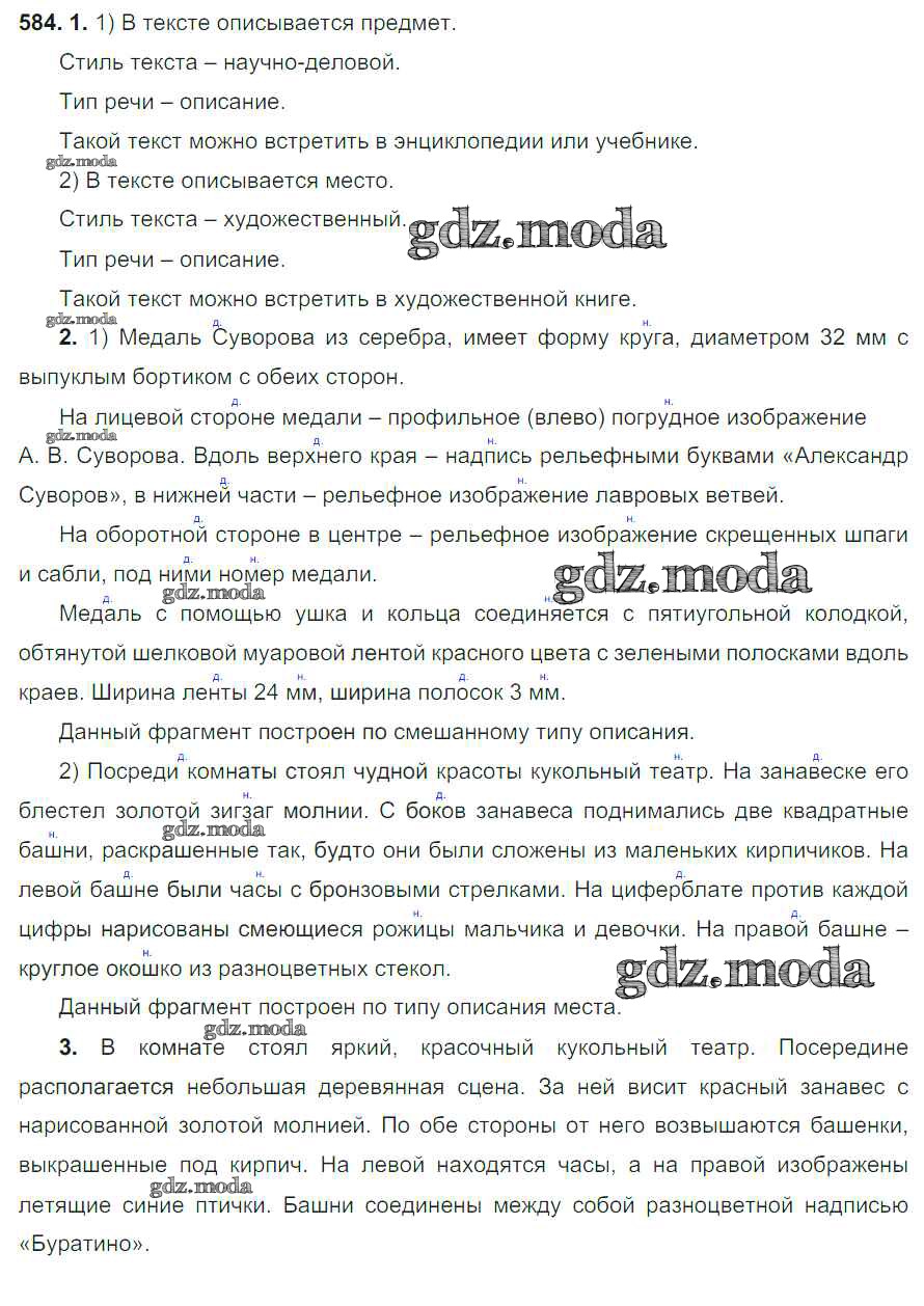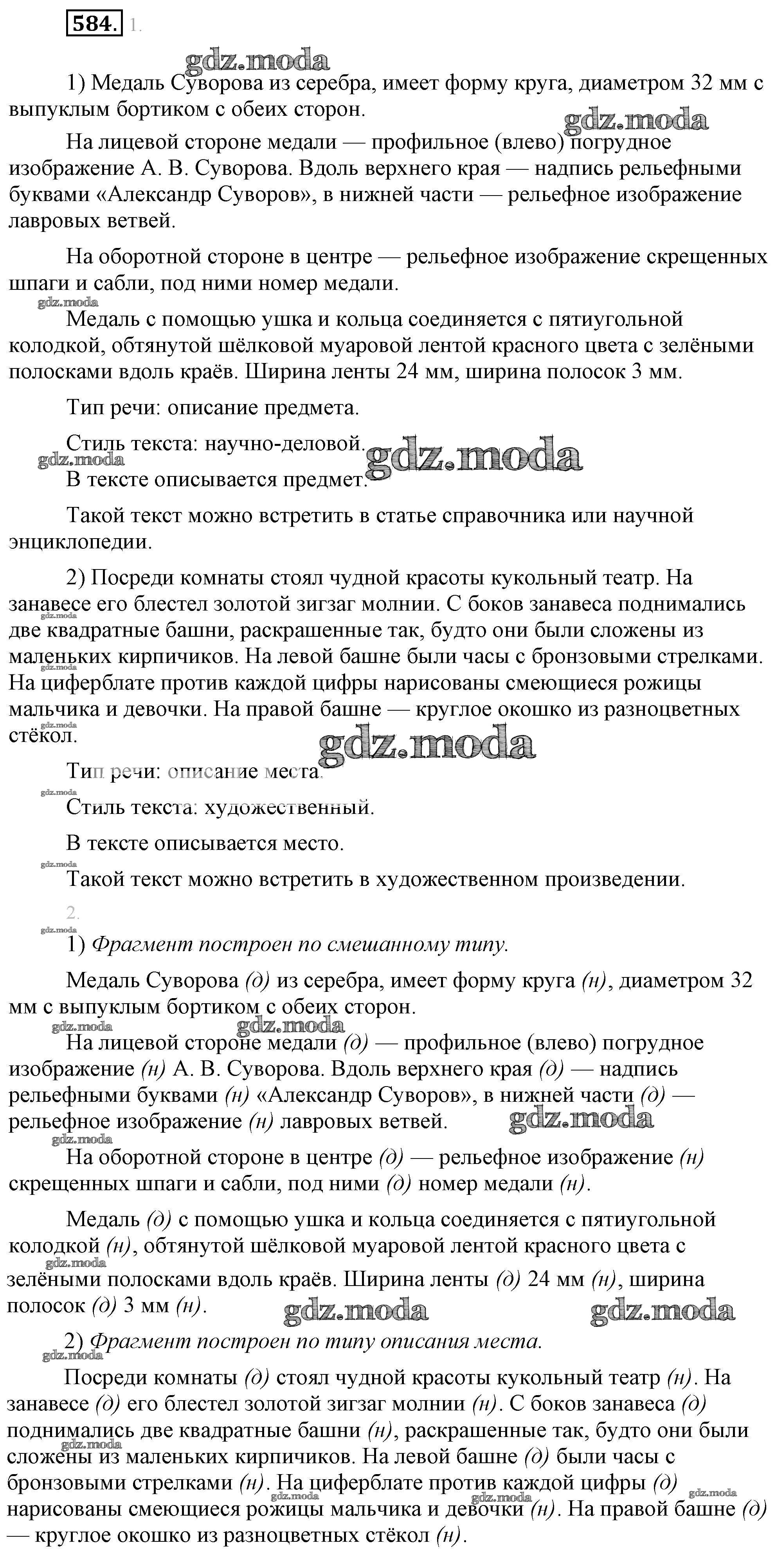 ОТВЕТ на задание № 584 Учебник по Русскому языку 6 класс Разумовская Вертикаль