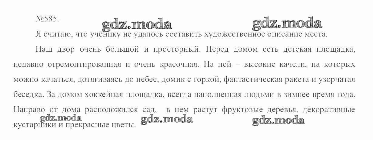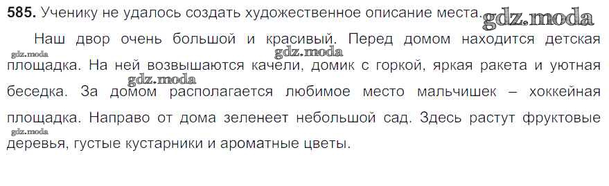 ОТВЕТ на задание № 585 Учебник по Русскому языку 6 класс Разумовская Вертикаль