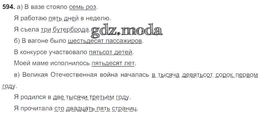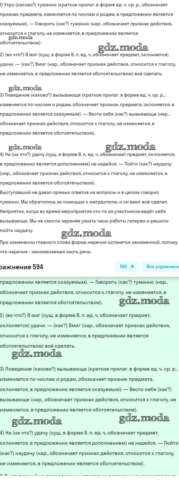 ОТВЕТ на задание № 594 Учебник по Русскому языку 6 класс Разумовская Вертикаль