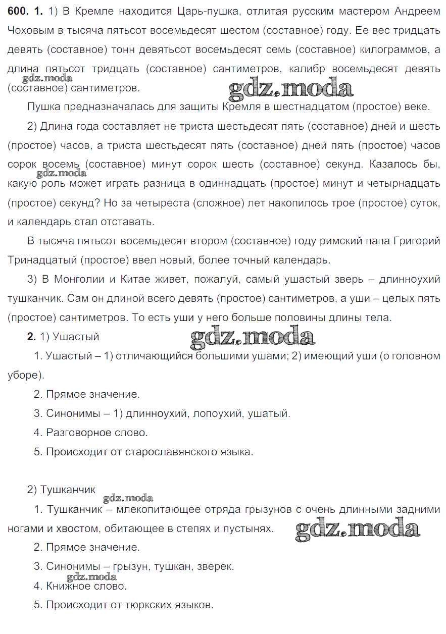 ОТВЕТ на задание № 600 Учебник по Русскому языку 6 класс Разумовская Вертикаль