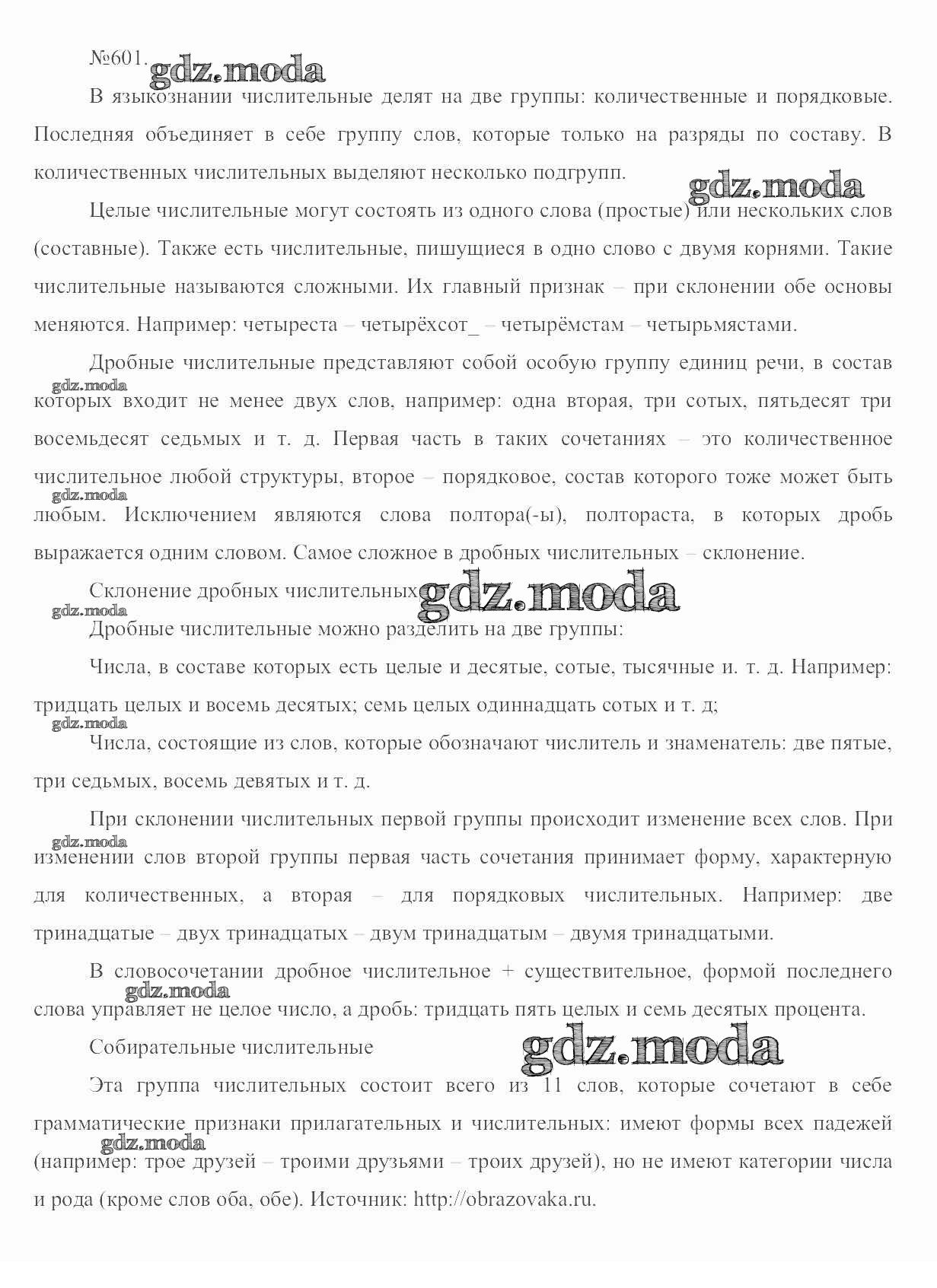 ОТВЕТ на задание № 601 Учебник по Русскому языку 6 класс Разумовская Вертикаль