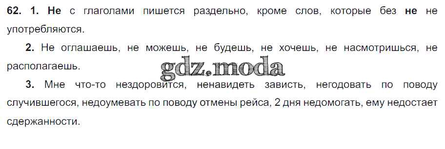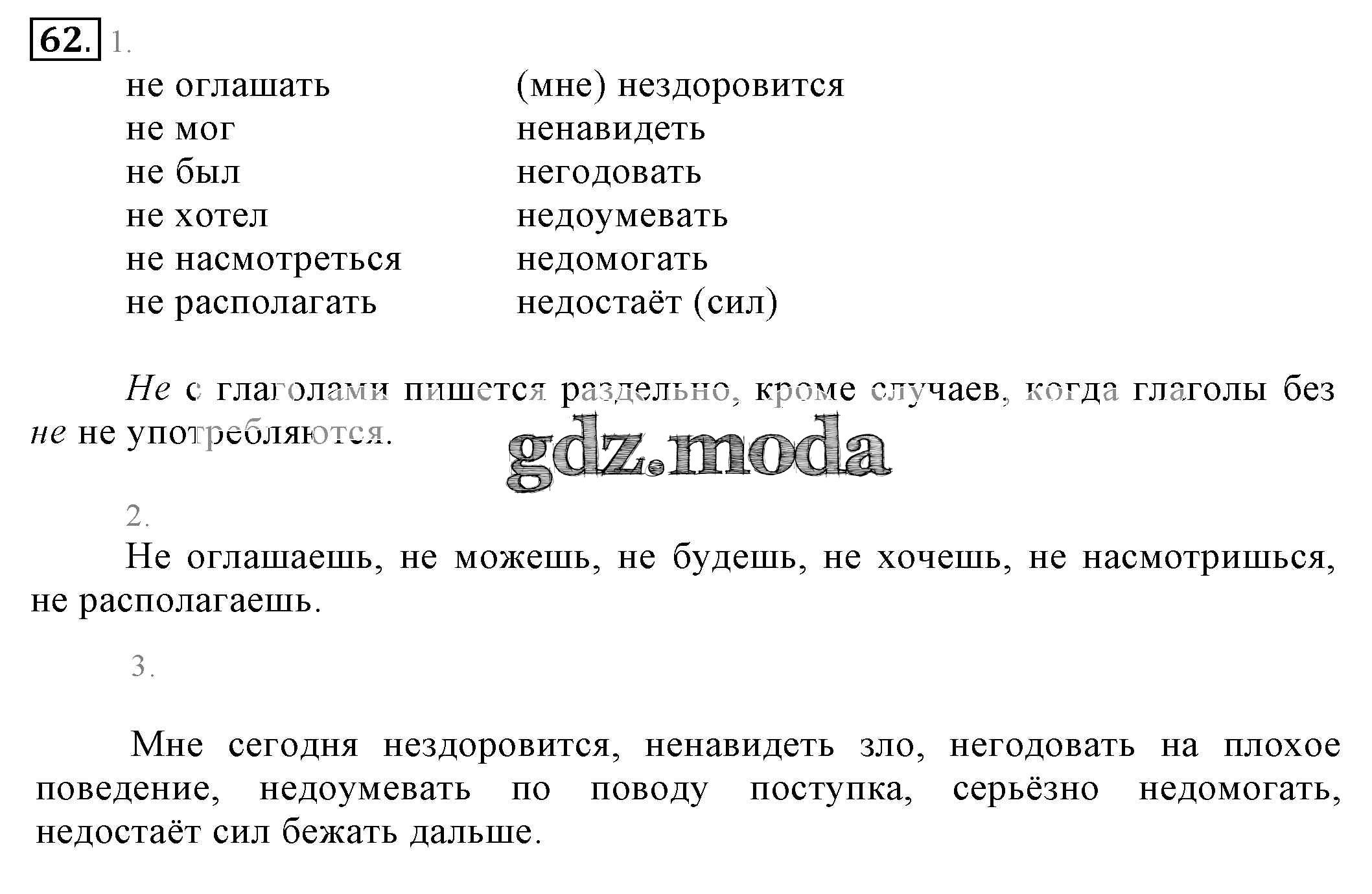 ОТВЕТ на задание № 62 Учебник по Русскому языку 6 класс Разумовская Вертикаль