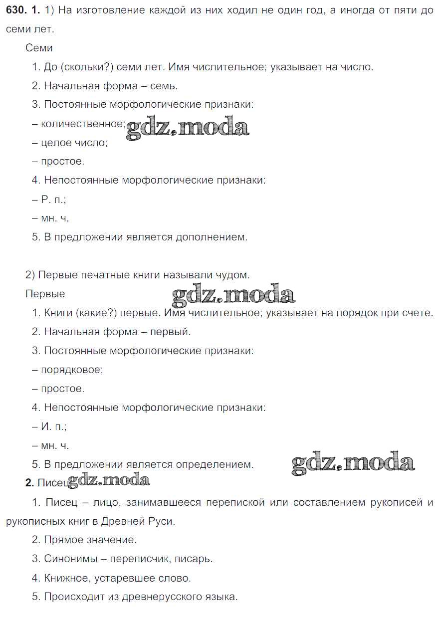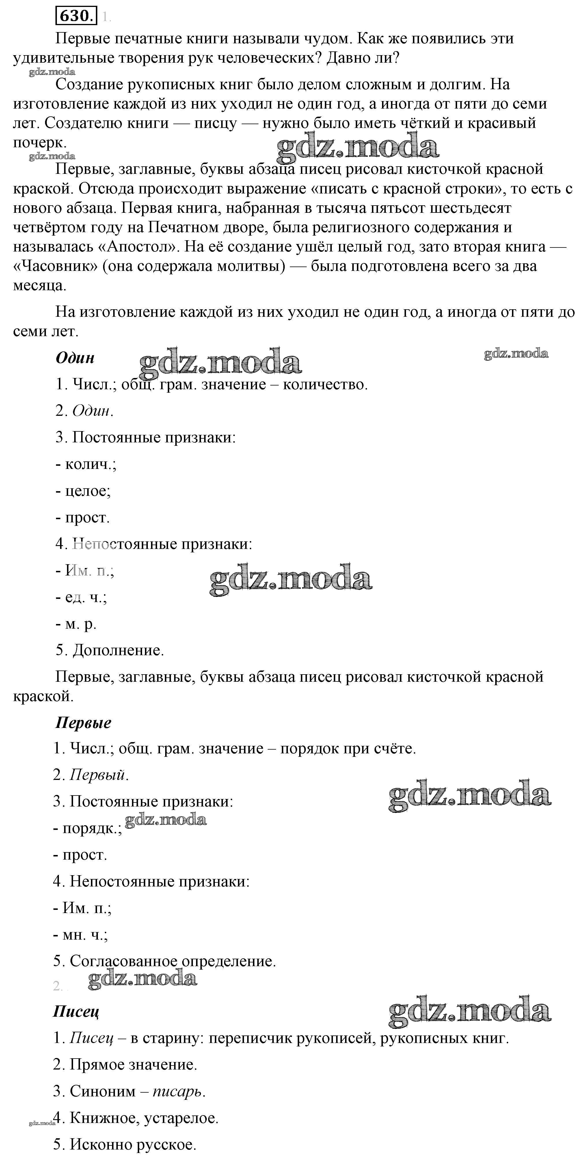 ОТВЕТ на задание № 630 Учебник по Русскому языку 6 класс Разумовская Вертикаль