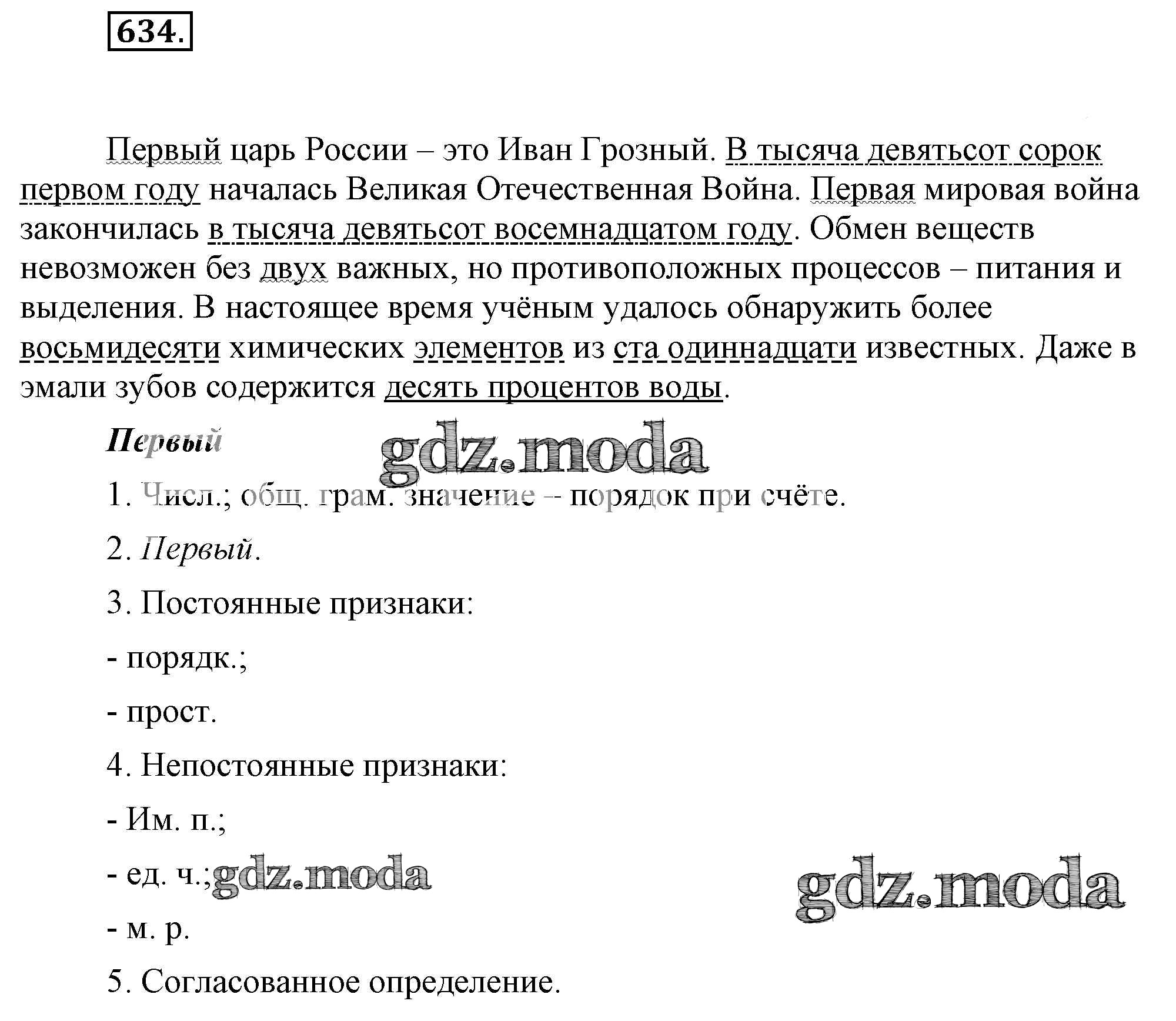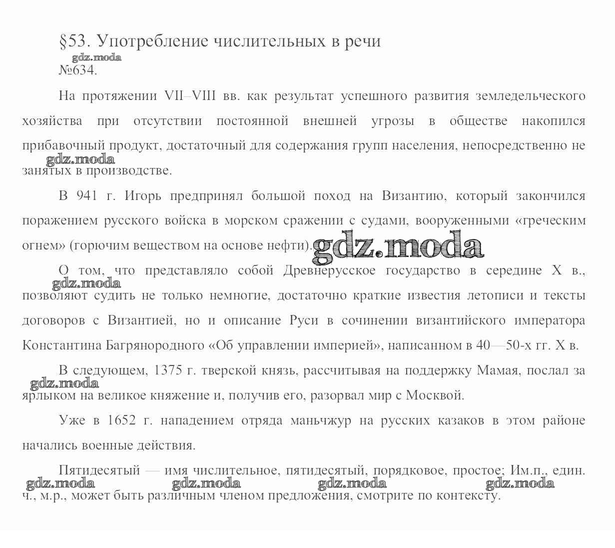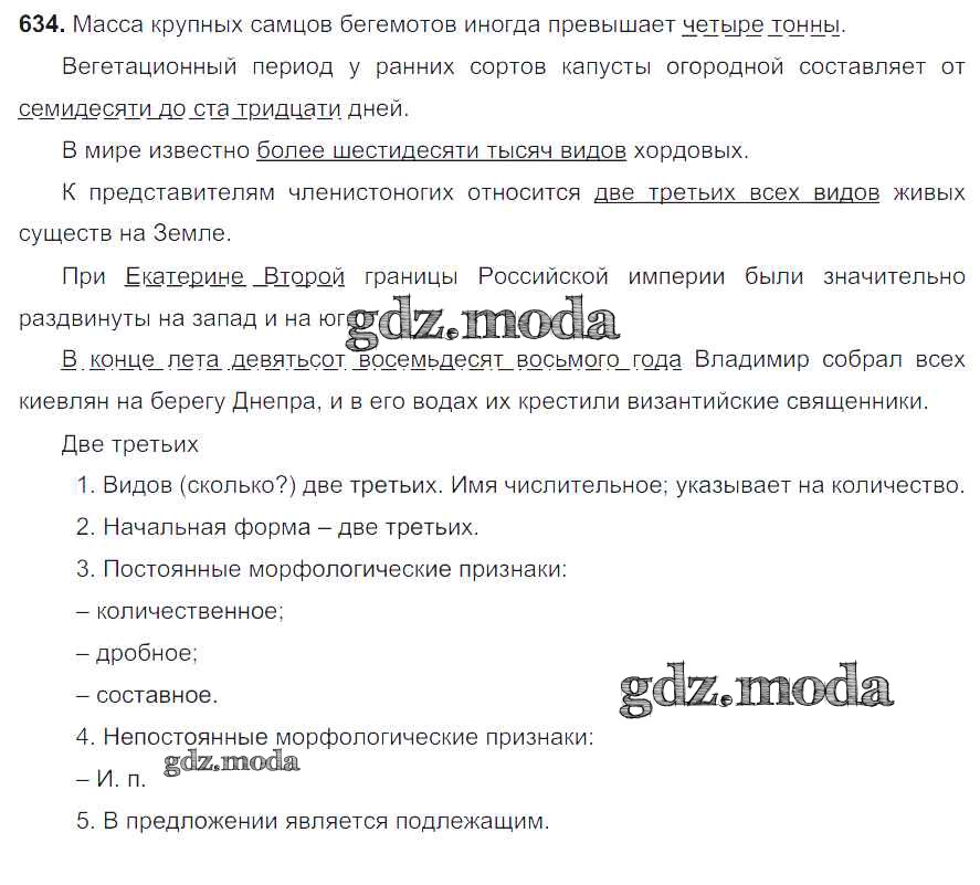 ОТВЕТ на задание № 634 Учебник по Русскому языку 6 класс Разумовская Вертикаль