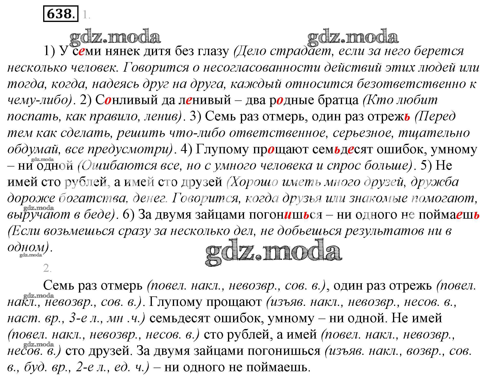 ОТВЕТ на задание № 638 Учебник по Русскому языку 6 класс Разумовская Вертикаль