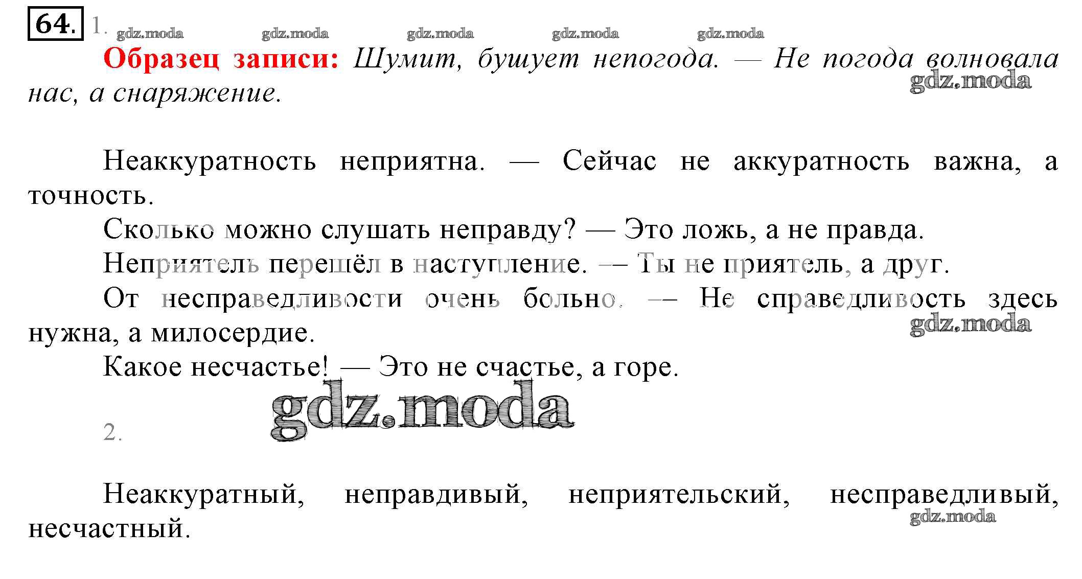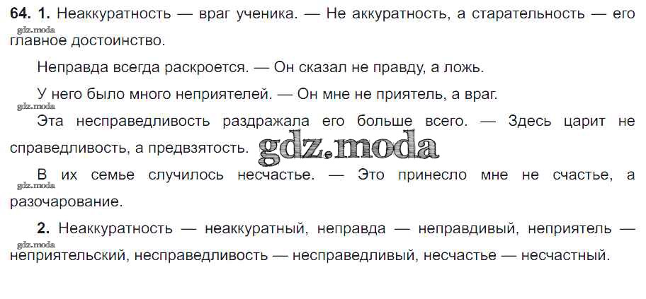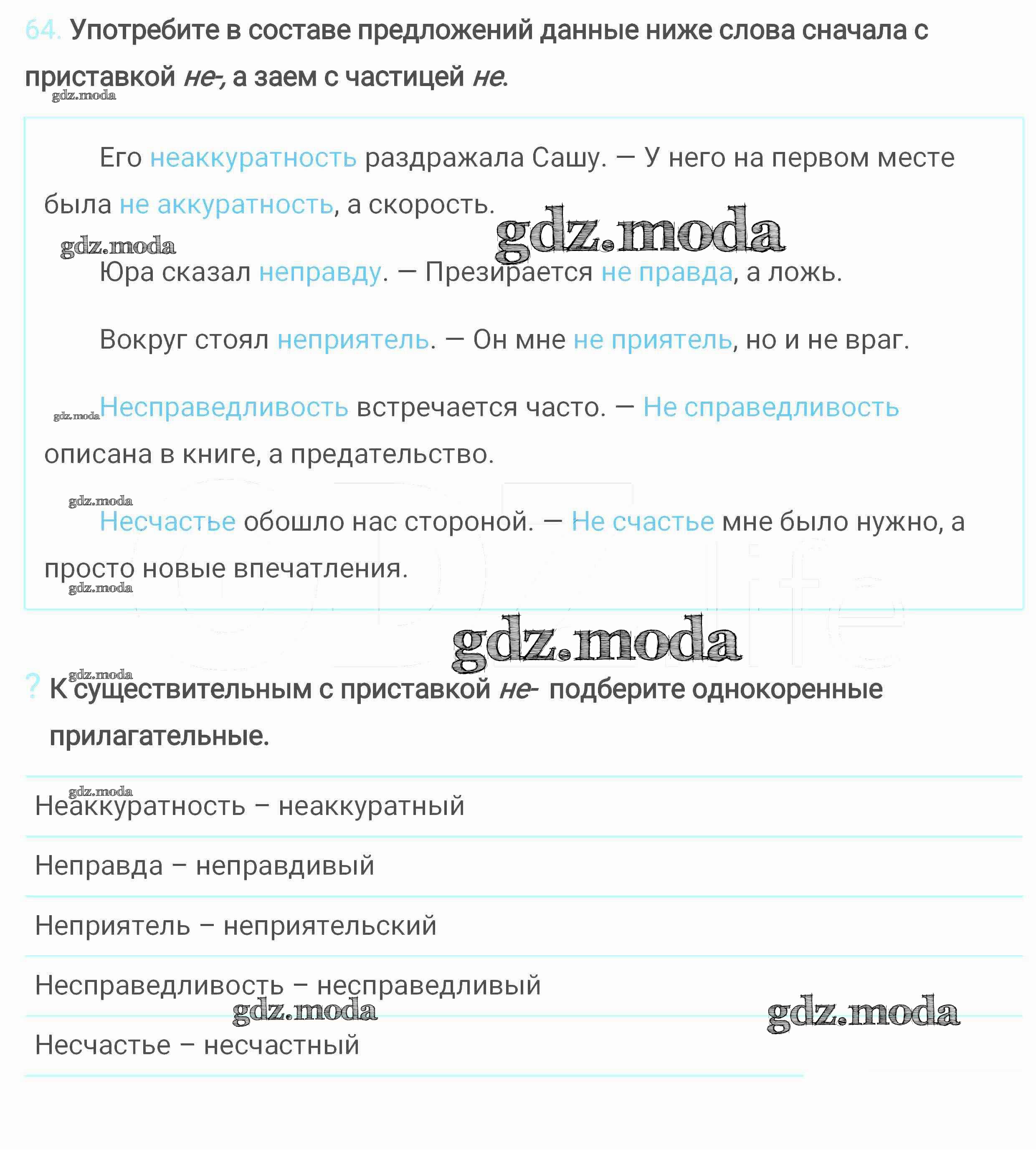 ОТВЕТ на задание № 64 Учебник по Русскому языку 6 класс Разумовская Вертикаль