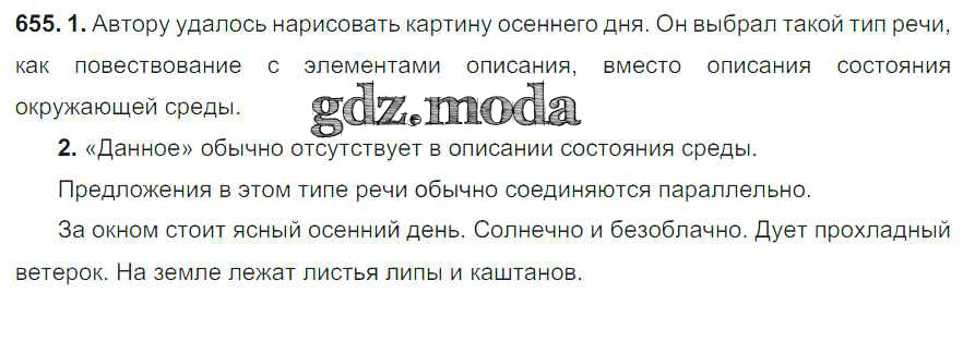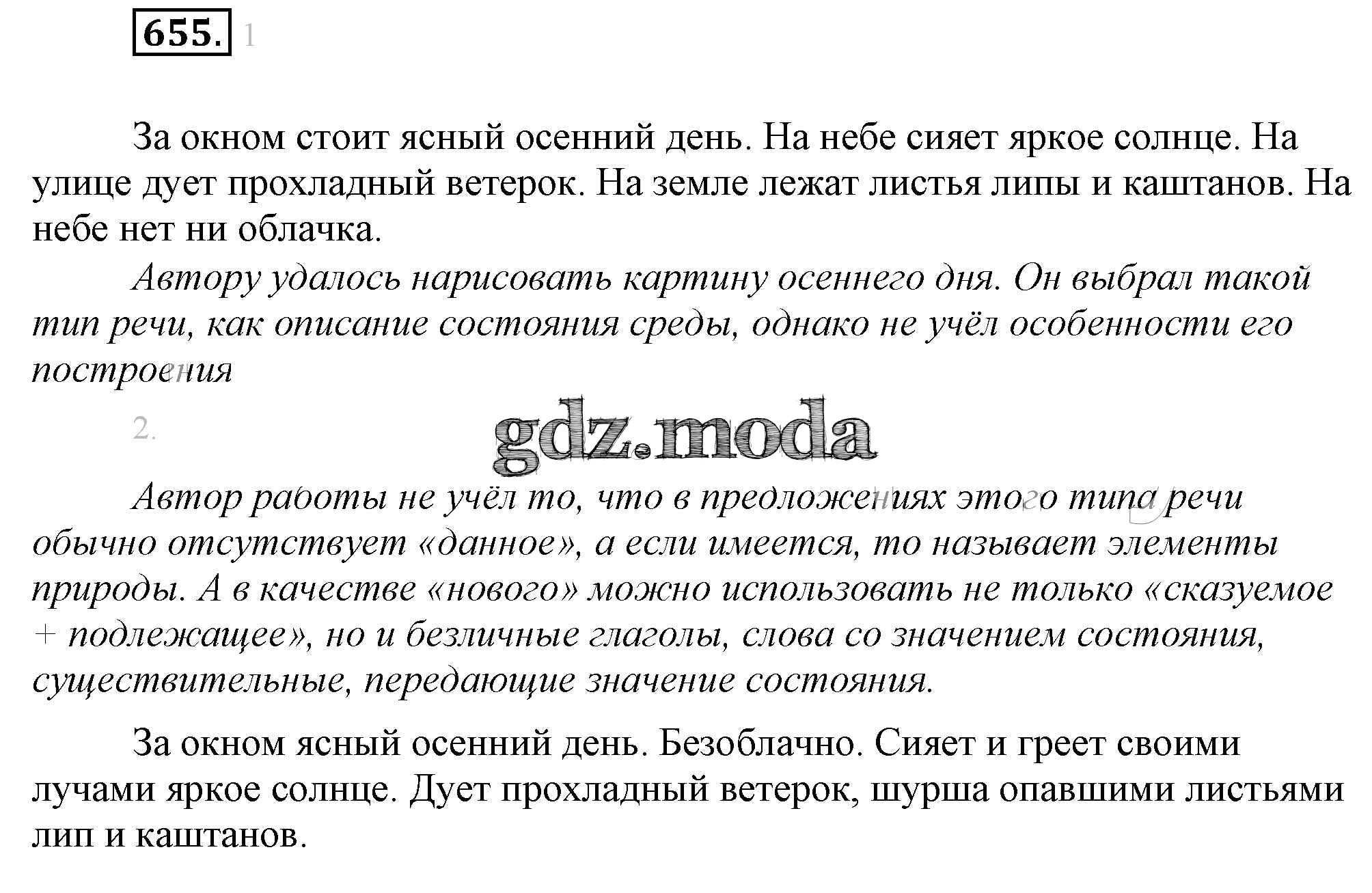 ОТВЕТ на задание № 655 Учебник по Русскому языку 6 класс Разумовская Вертикаль