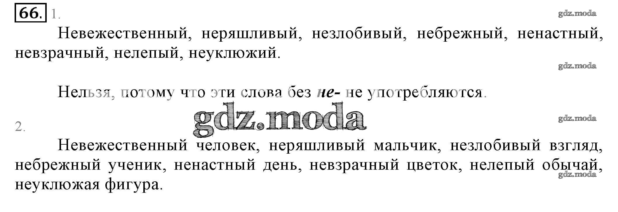 ОТВЕТ на задание № 66 Учебник по Русскому языку 6 класс Разумовская Вертикаль
