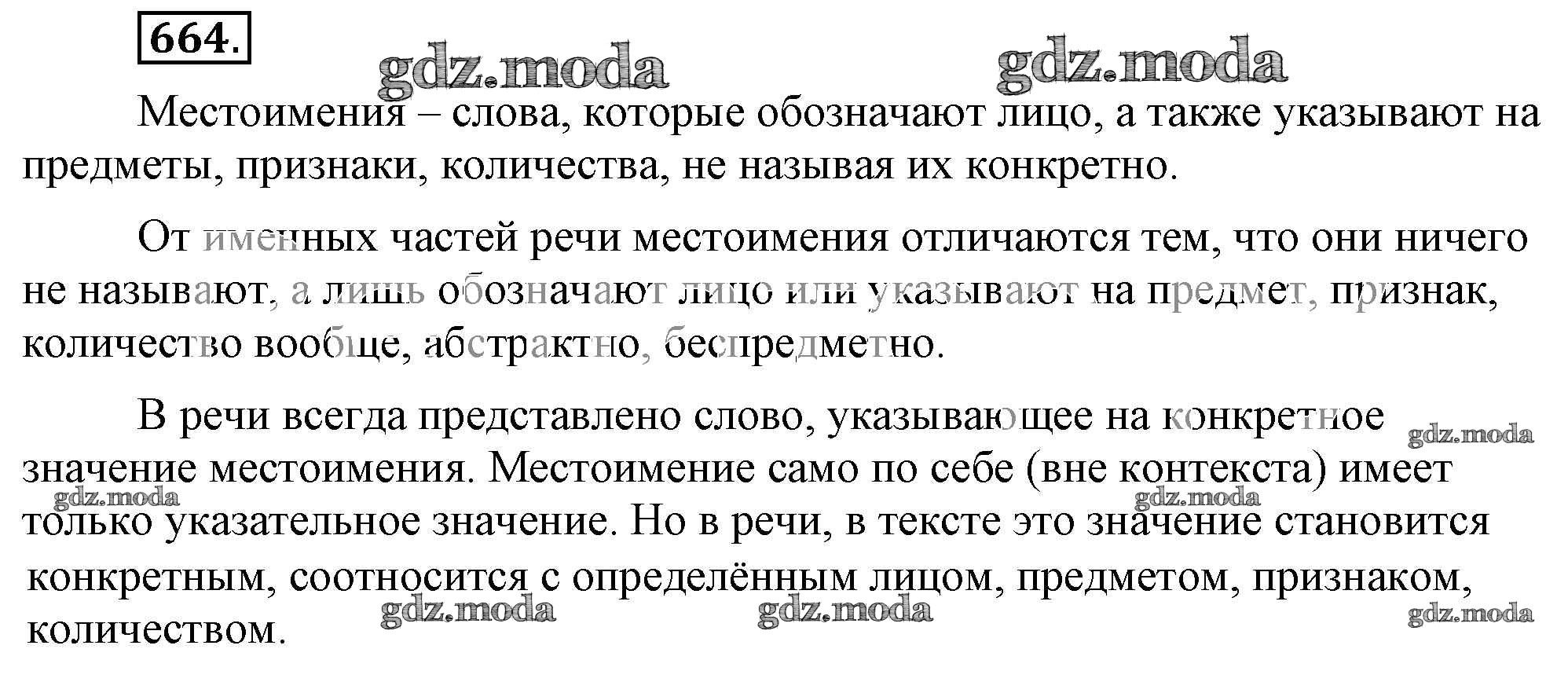 ОТВЕТ на задание № 664 Учебник по Русскому языку 6 класс Разумовская Вертикаль