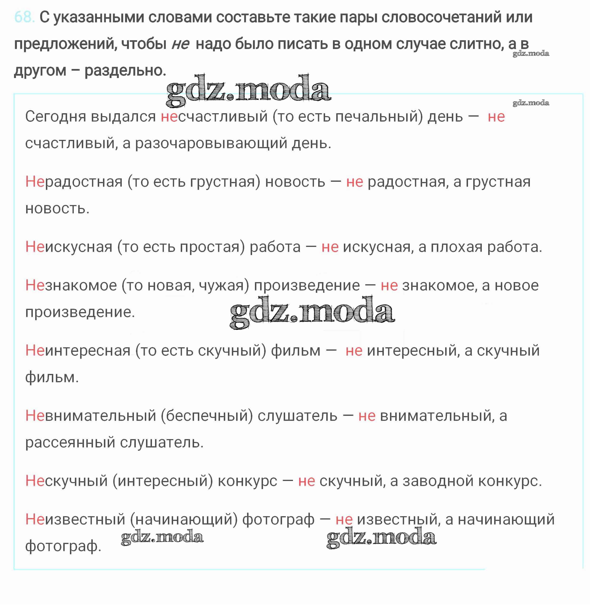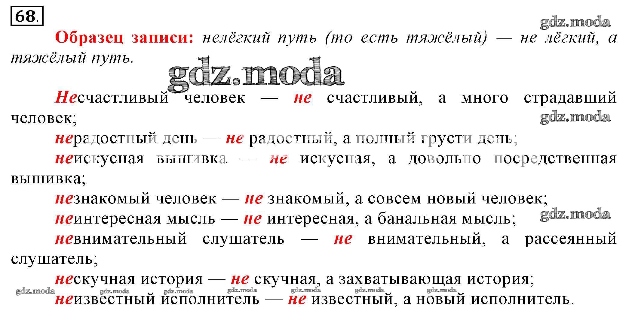 ОТВЕТ на задание № 68 Учебник по Русскому языку 6 класс Разумовская Вертикаль