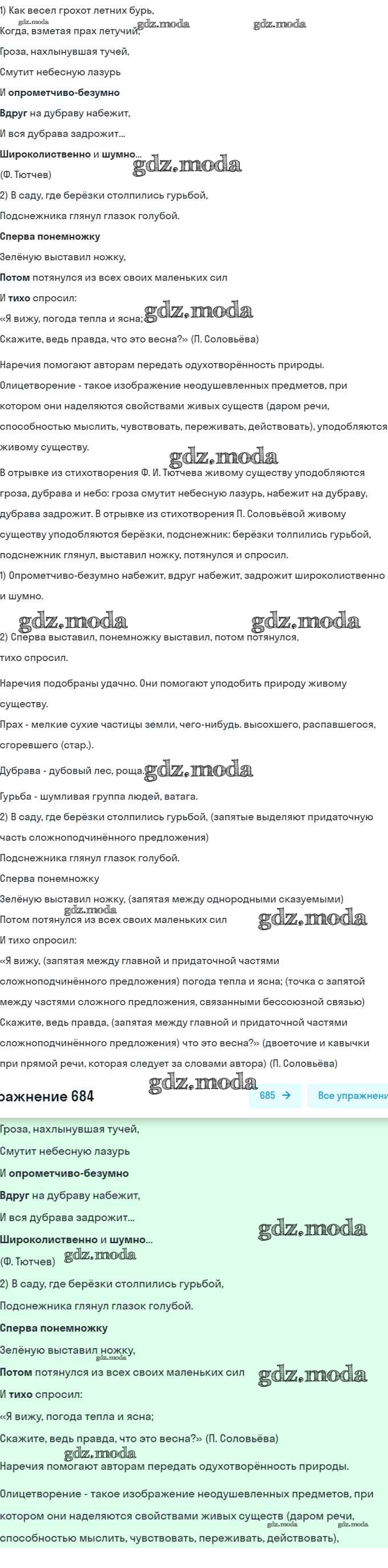 ОТВЕТ на задание № 684 Учебник по Русскому языку 6 класс Разумовская Вертикаль