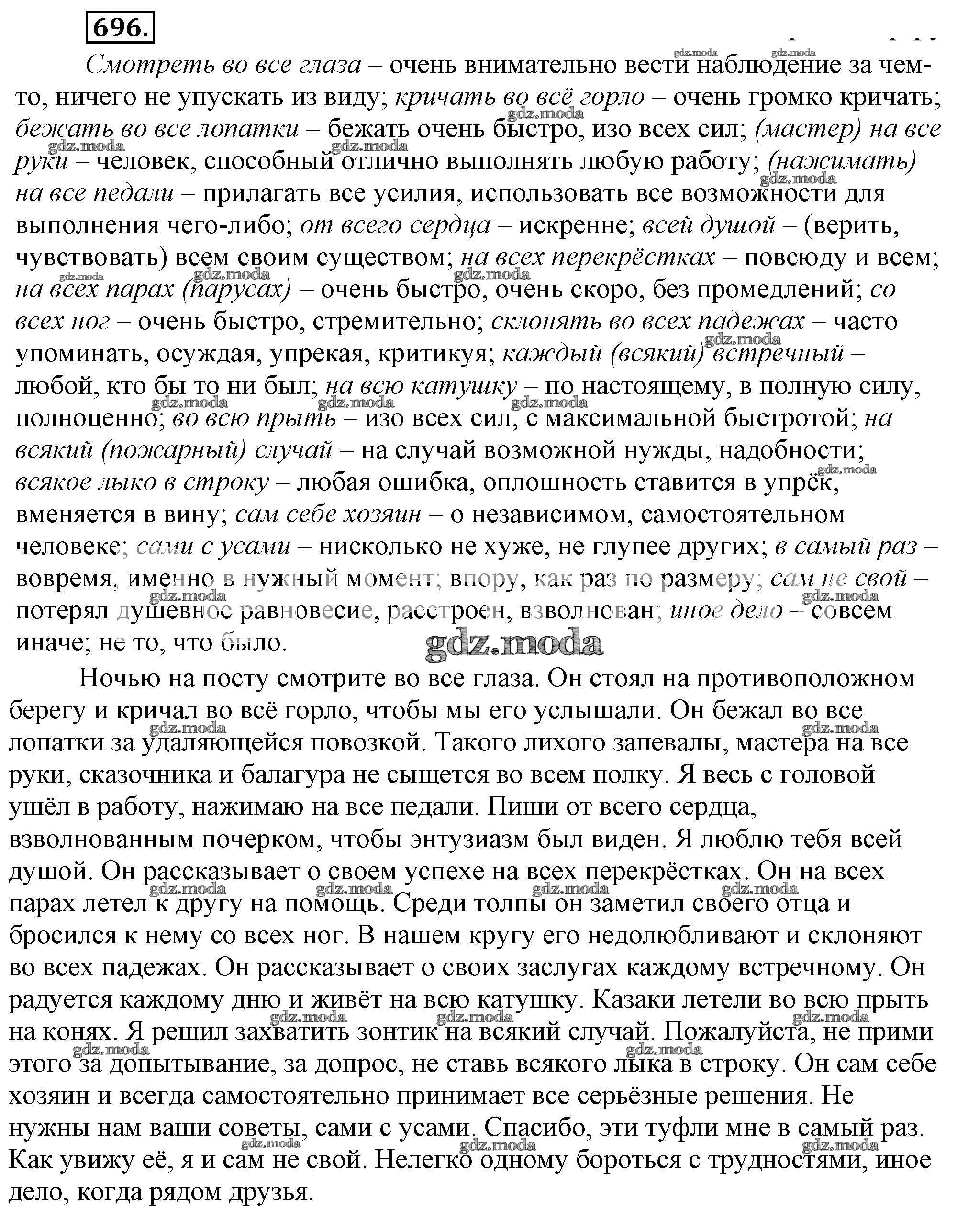 ОТВЕТ на задание № 696 Учебник по Русскому языку 6 класс Разумовская Вертикаль