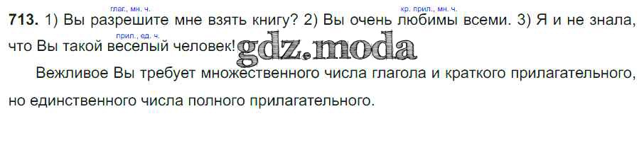 ОТВЕТ на задание № 713 Учебник по Русскому языку 6 класс Разумовская Вертикаль