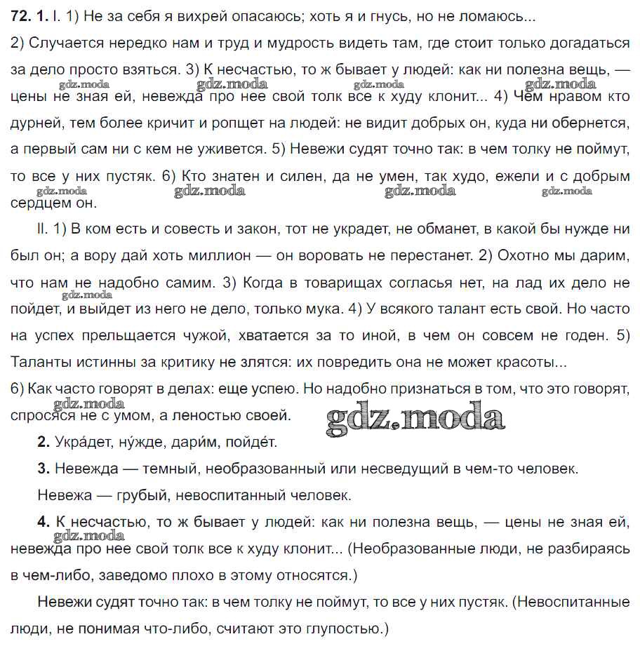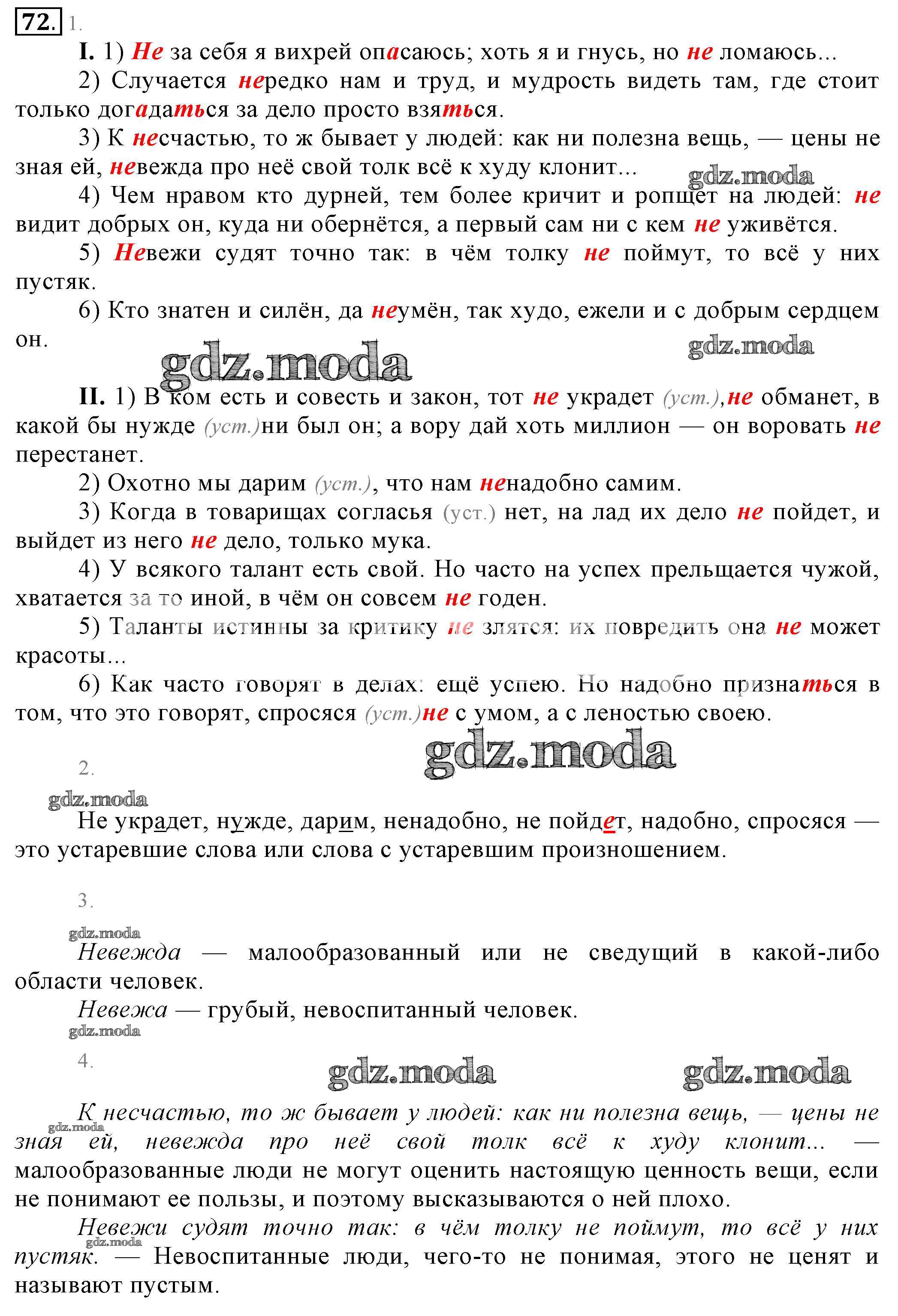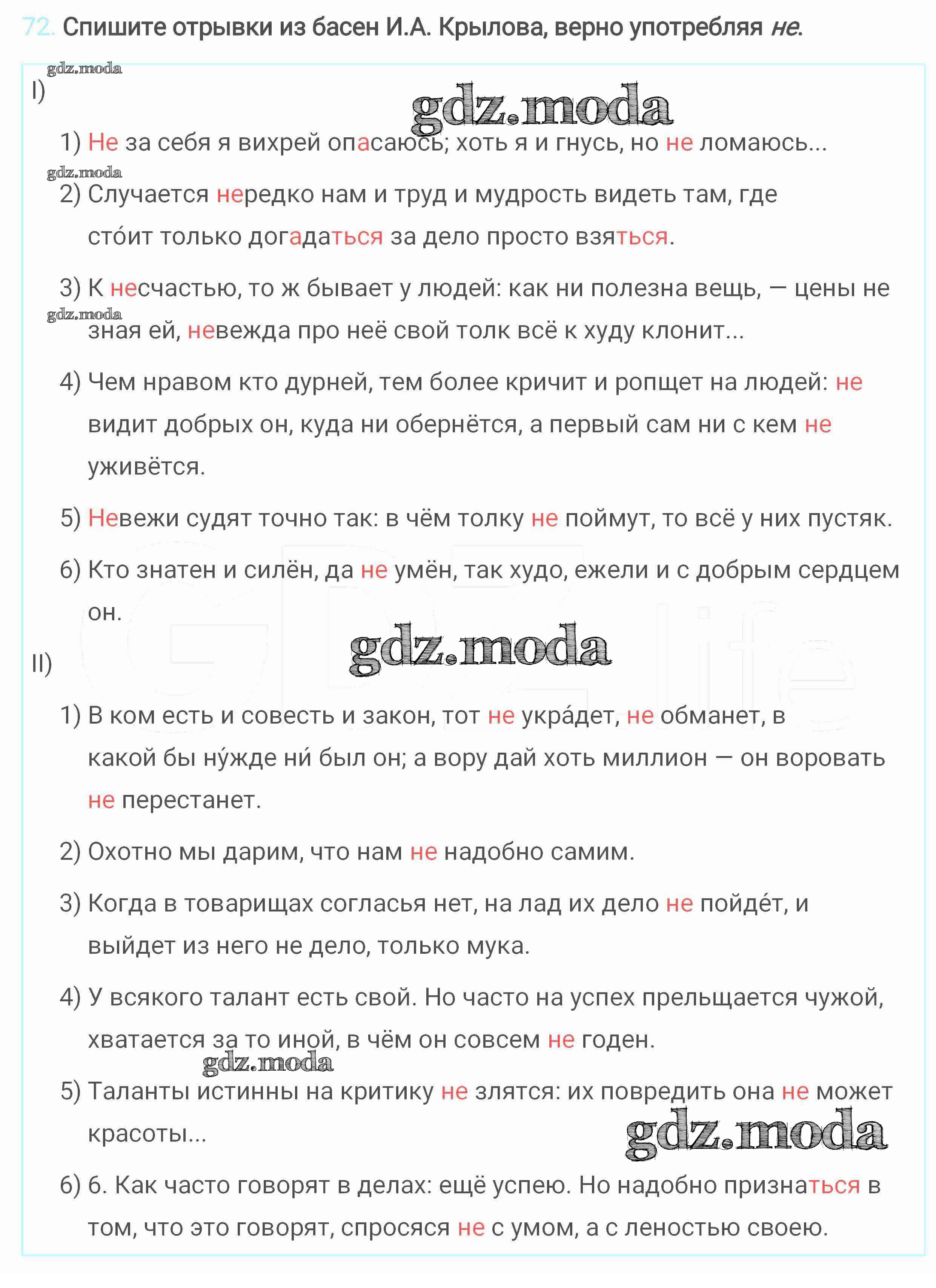 ОТВЕТ на задание № 72 Учебник по Русскому языку 6 класс Разумовская Вертикаль