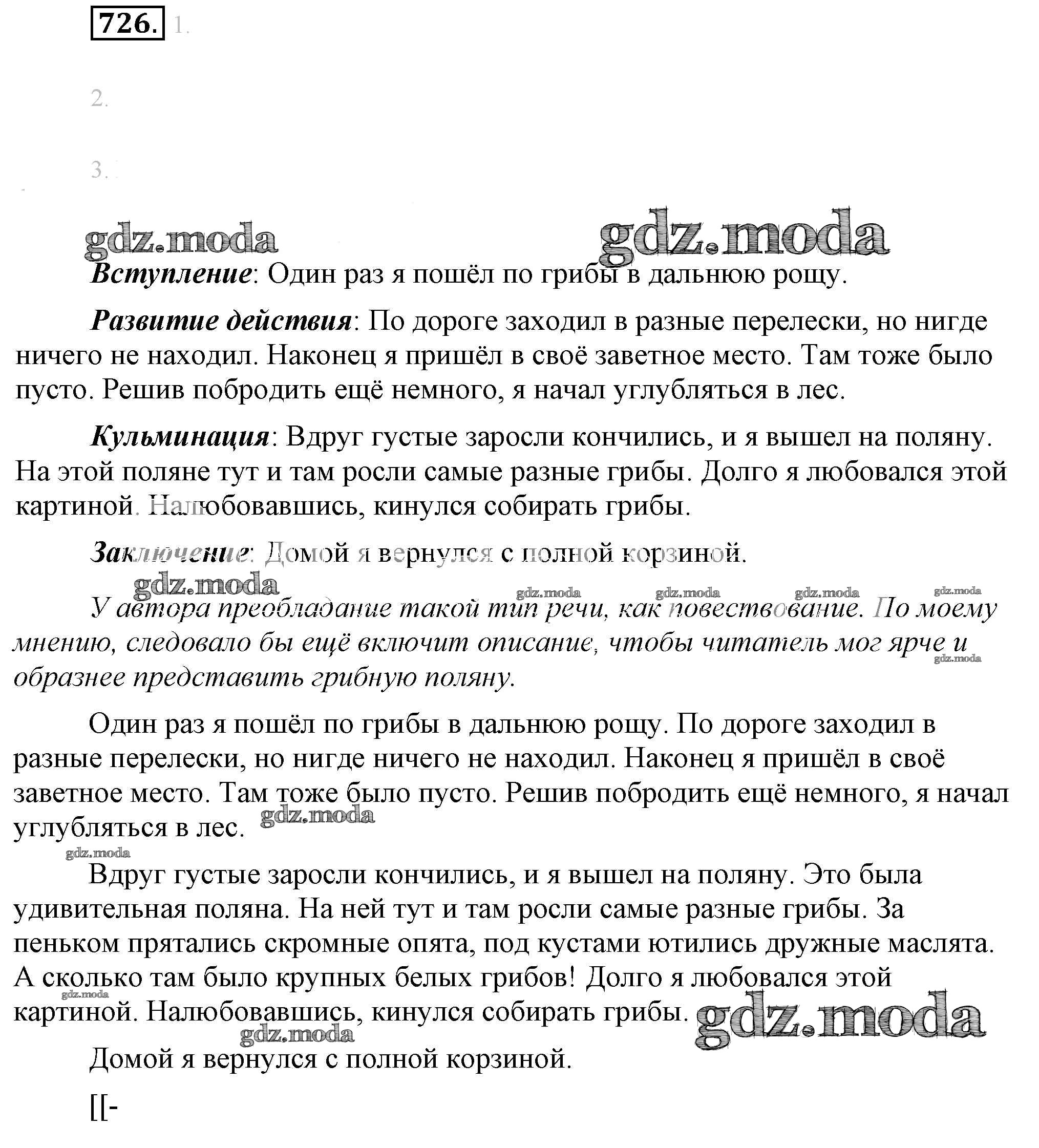 ОТВЕТ на задание № 726 Учебник по Русскому языку 6 класс Разумовская Вертикаль
