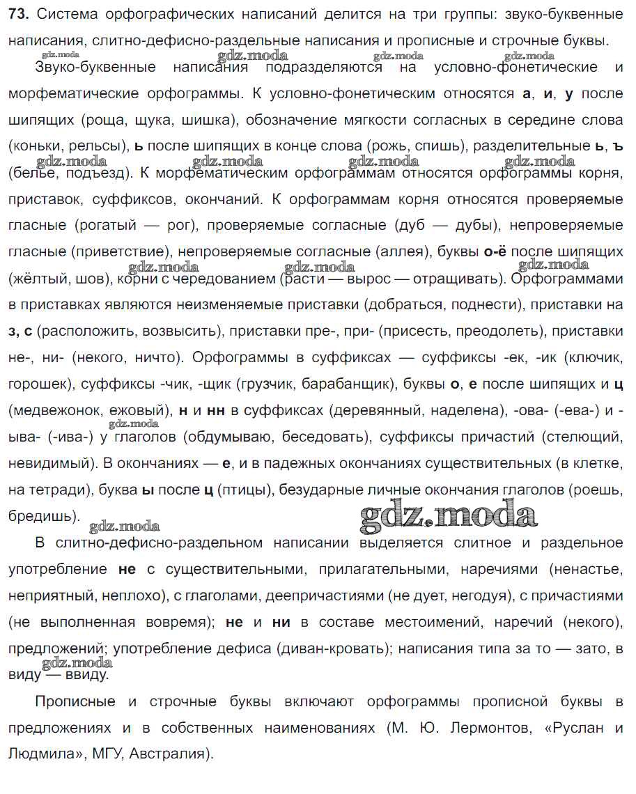 ОТВЕТ на задание № 73 Учебник по Русскому языку 6 класс Разумовская Вертикаль