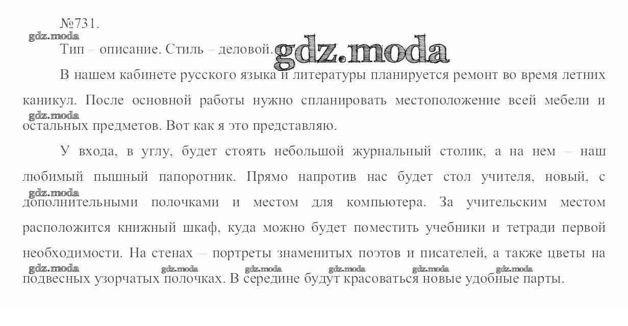 ОТВЕТ на задание № 731 Учебник по Русскому языку 6 класс Разумовская Вертикаль
