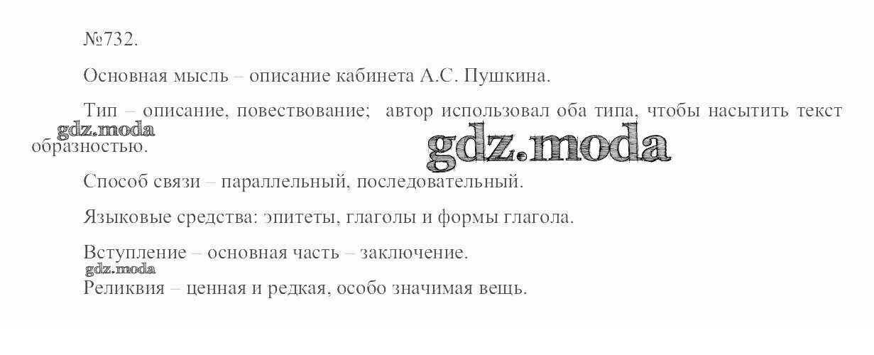 ОТВЕТ на задание № 732 Учебник по Русскому языку 6 класс Разумовская Вертикаль
