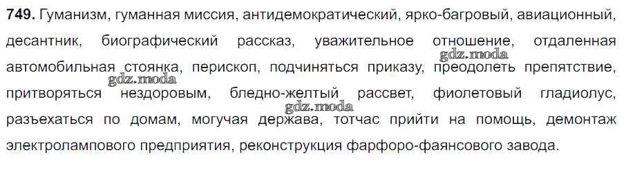 ОТВЕТ на задание № 749 Учебник по Русскому языку 6 класс Разумовская Вертикаль