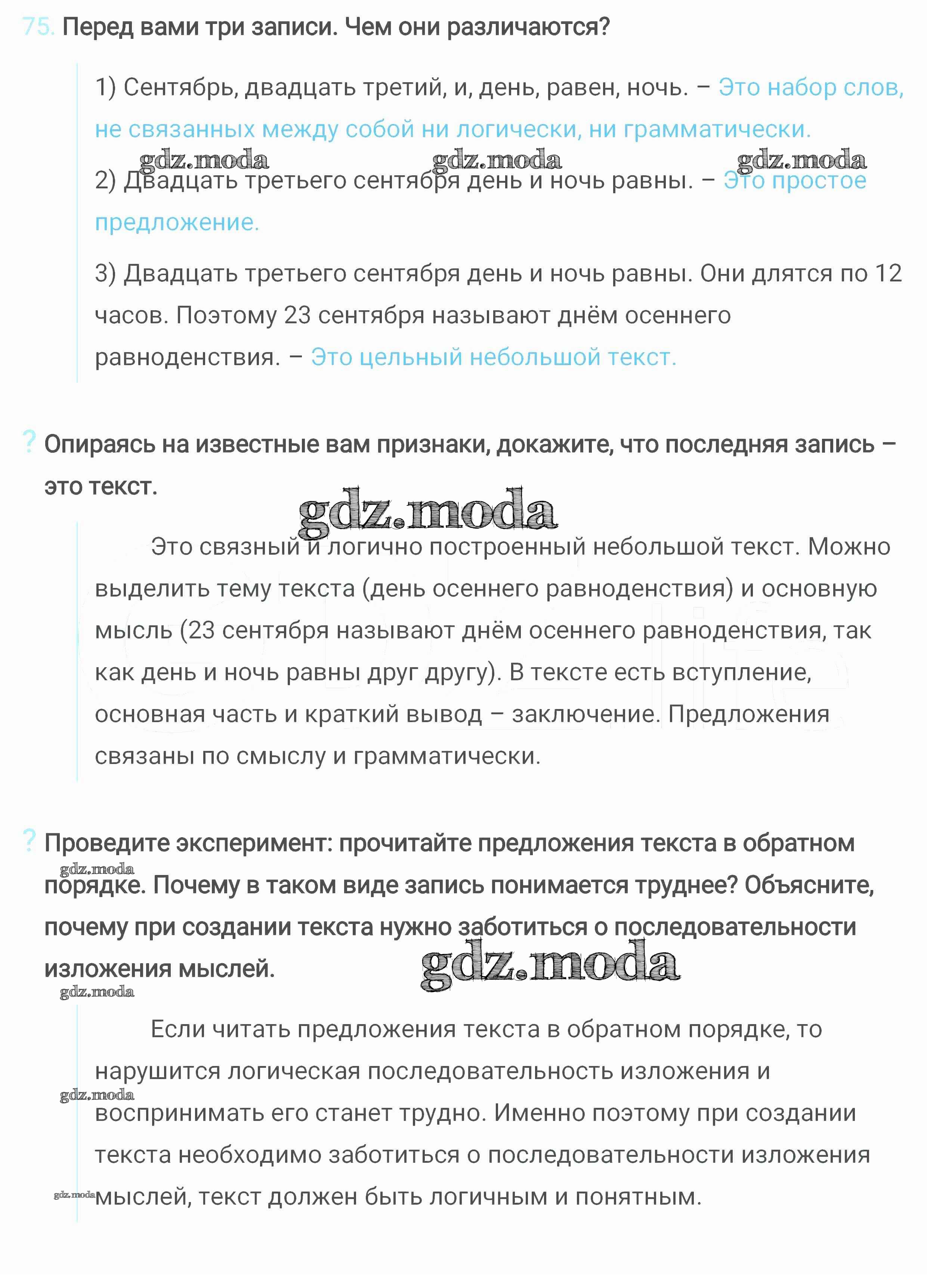ОТВЕТ на задание № 75 Учебник по Русскому языку 6 класс Разумовская Вертикаль
