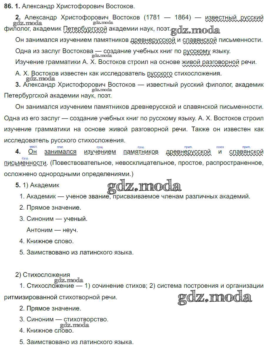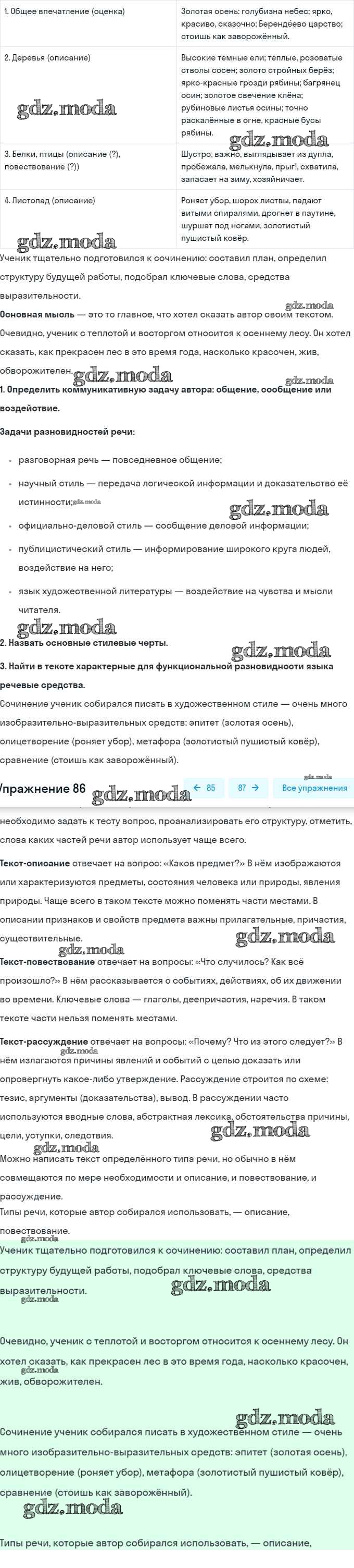 ОТВЕТ на задание № 86 Учебник по Русскому языку 6 класс Разумовская Вертикаль