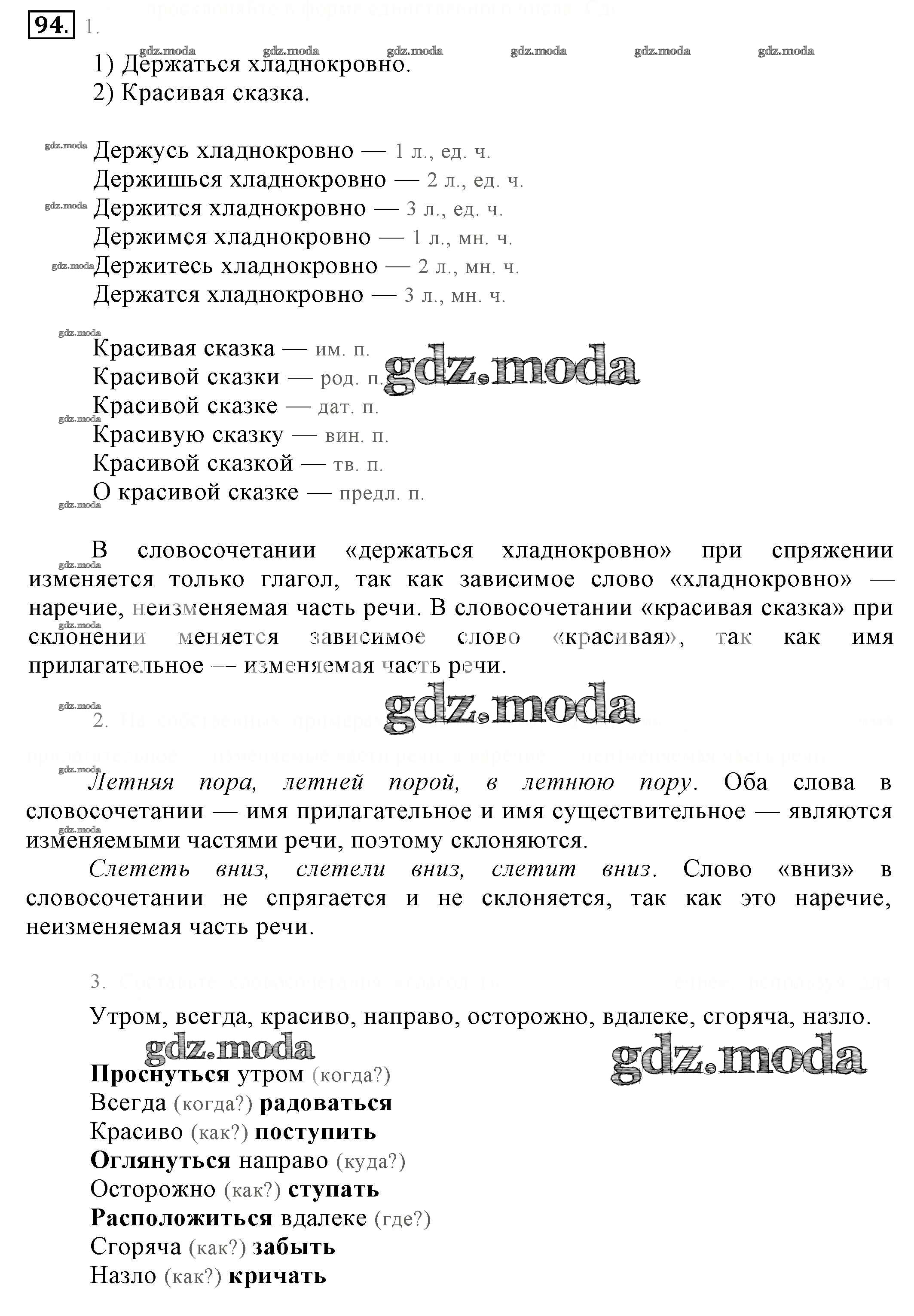ОТВЕТ на задание № 94 Учебник по Русскому языку 6 класс Разумовская Вертикаль