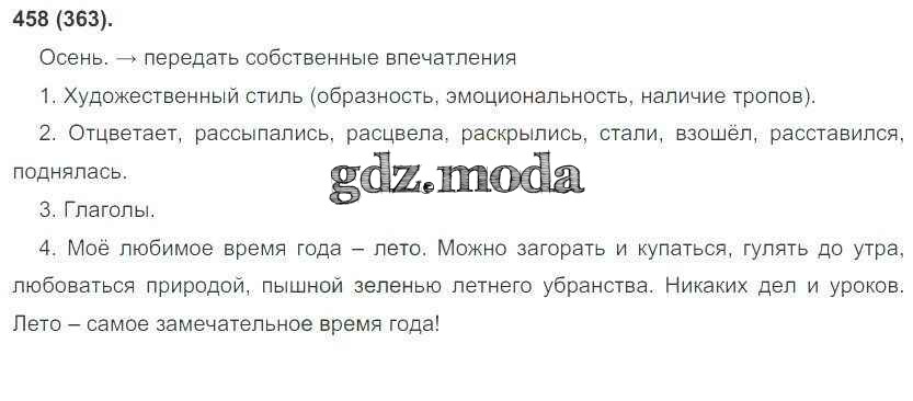 ГДЗ решение к заданию № 458 Русский язык 6 класс Рыбченкова Л.М. Просвещение 2016 Часть 1, Часть 2 ФГОС бесплатно на гдз.мода!