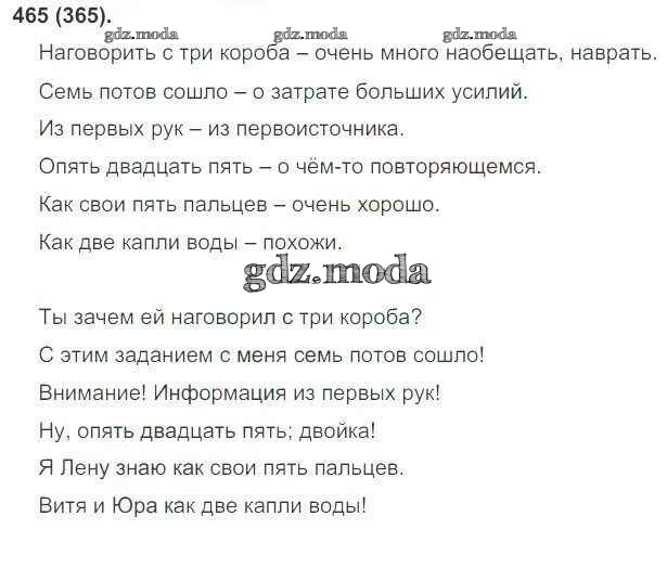 ОТВЕТ на задание № 465 Учебник по Русскому языку 6 класс Рыбченкова