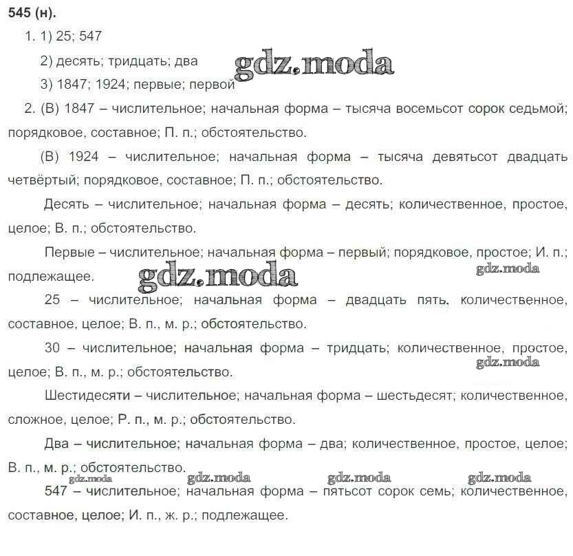 ГДЗ решение к заданию № 545 Русский язык 6 класс Рыбченкова Л.М. Просвещение 2016 Часть 1, Часть 2 ФГОС бесплатно на гдз.мода!