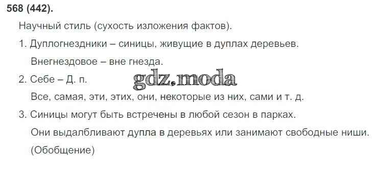 ОТВЕТ на задание № 568 Учебник по Русскому языку 6 класс Рыбченкова