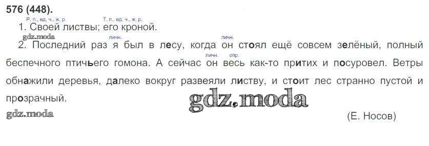 ГДЗ решение к заданию № 576 Русский язык 6 класс Рыбченкова Л.М. Просвещение 2016 Часть 1, Часть 2 ФГОС бесплатно на гдз.мода!