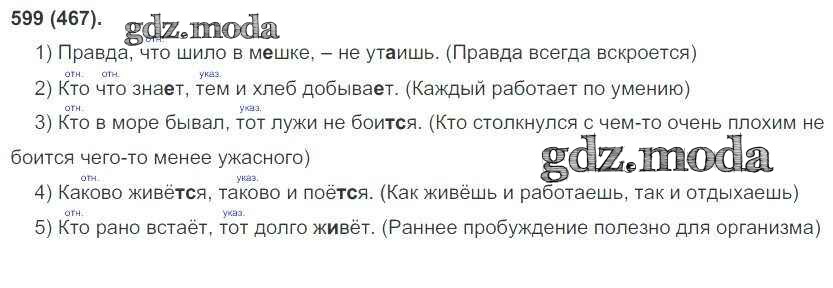 ОТВЕТ на задание № 599 Учебник по Русскому языку 6 класс Рыбченкова