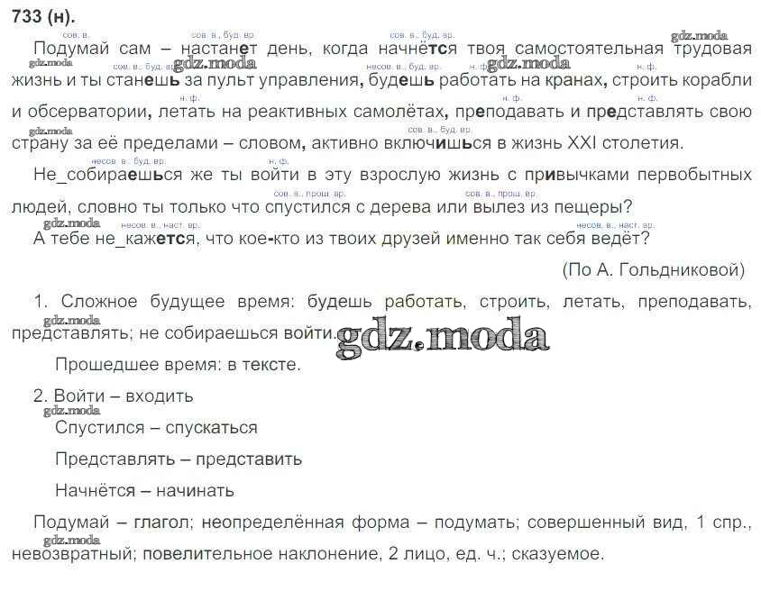 ГДЗ решение к заданию № 733 Русский язык 6 класс Рыбченкова Л.М. Просвещение 2016 Часть 1, Часть 2 ФГОС бесплатно на гдз.мода!