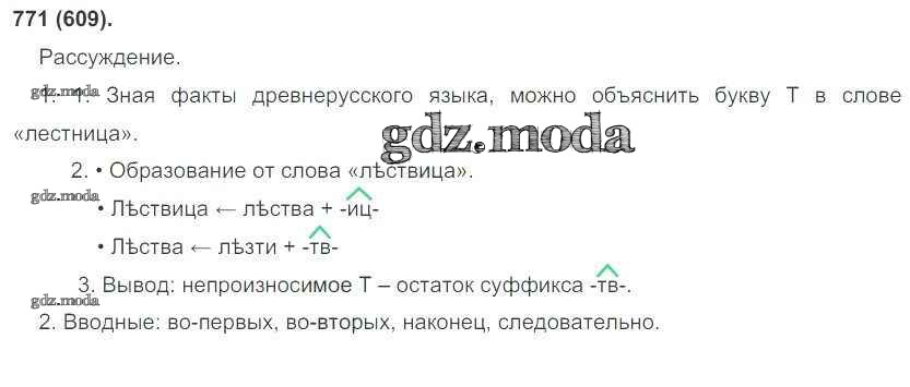 ОТВЕТ на задание № 771 Учебник по Русскому языку 6 класс Рыбченкова