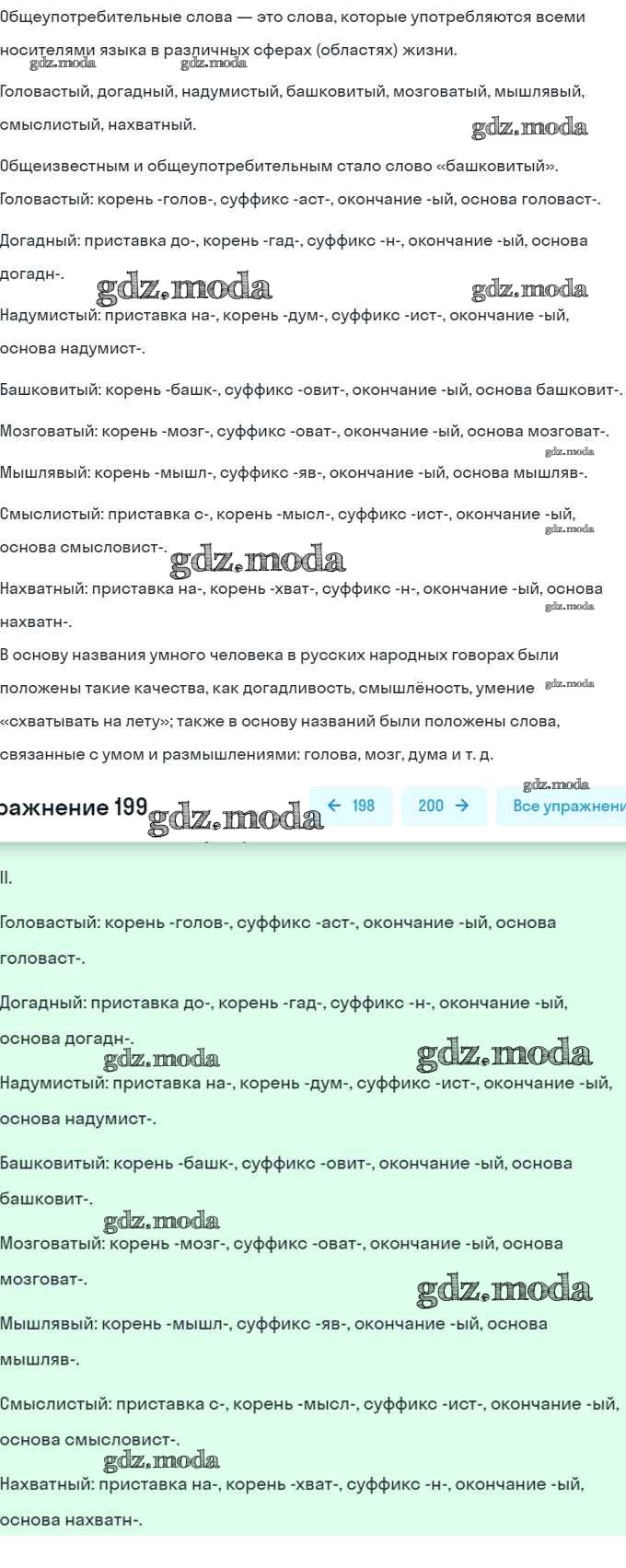 ОТВЕТ на задание № 199 Учебник по Русскому языку 6 класс Рыбченкова