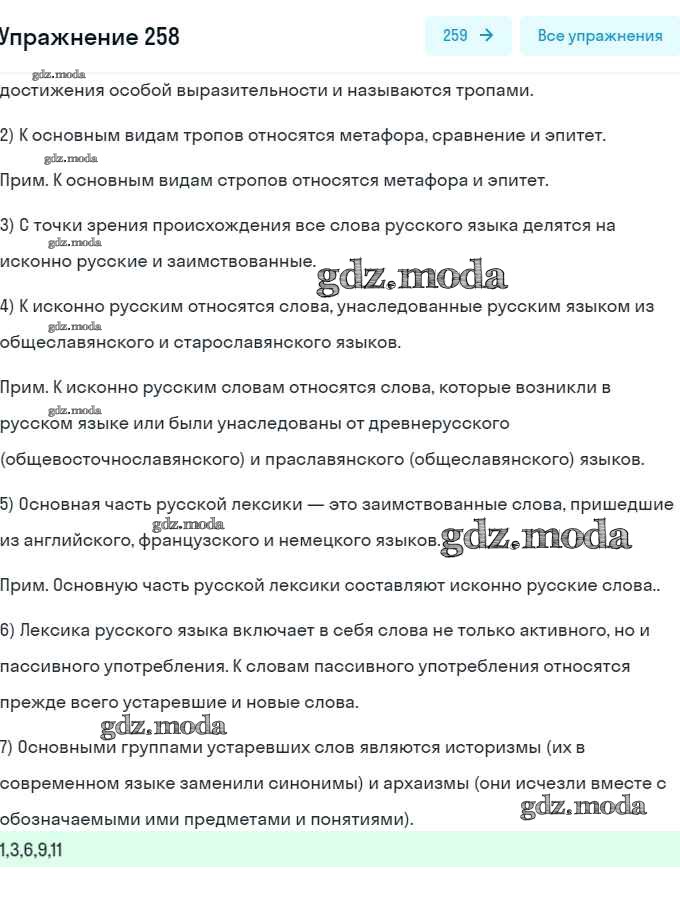 ОТВЕТ на задание № 258 Учебник по Русскому языку 6 класс Рыбченкова