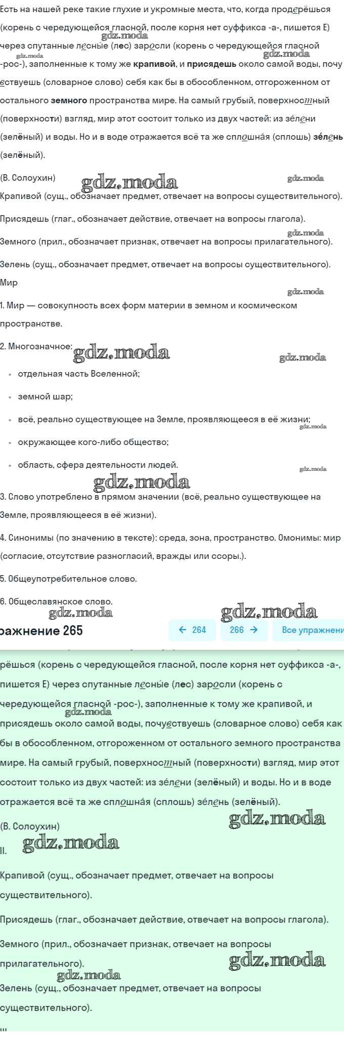 ГДЗ решение к заданию № 265 Русский язык 6 класс Рыбченкова Л.М. Просвещение 2016 Часть 1, Часть 2 ФГОС бесплатно на гдз.мода!
