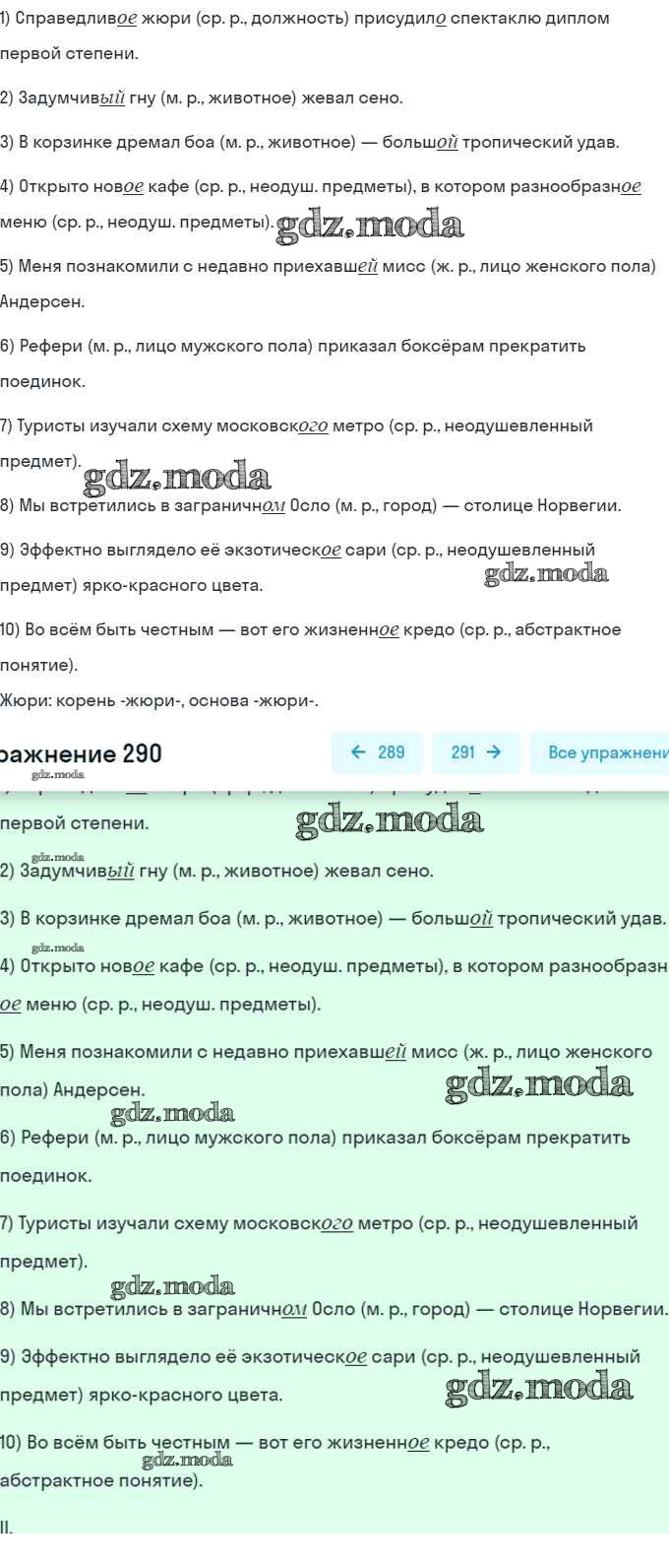 ОТВЕТ на задание № 290 Учебник по Русскому языку 6 класс Рыбченкова