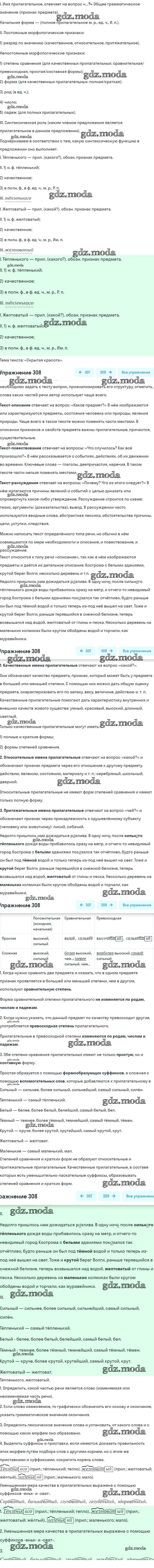 ГДЗ решение к заданию № 308 Русский язык 6 класс Рыбченкова Л.М. Просвещение 2016 Часть 1, Часть 2 ФГОС бесплатно на гдз.мода!