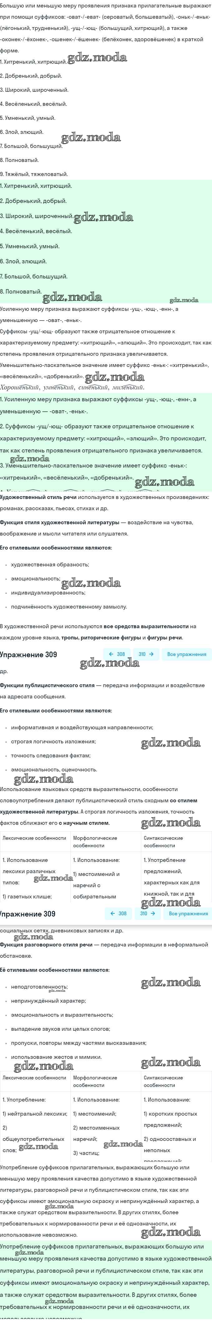 ГДЗ решение к заданию № 309 Русский язык 6 класс Рыбченкова Л.М. Просвещение 2016 Часть 1, Часть 2 ФГОС бесплатно на гдз.мода!