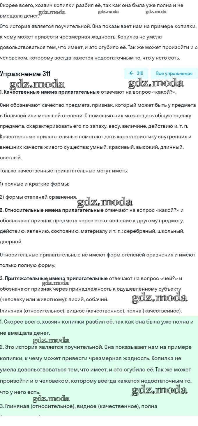 ОТВЕТ на задание № 311 Учебник по Русскому языку 6 класс Рыбченкова
