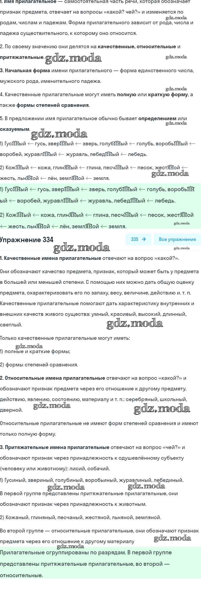 ОТВЕТ на задание № 334 Учебник по Русскому языку 6 класс Рыбченкова