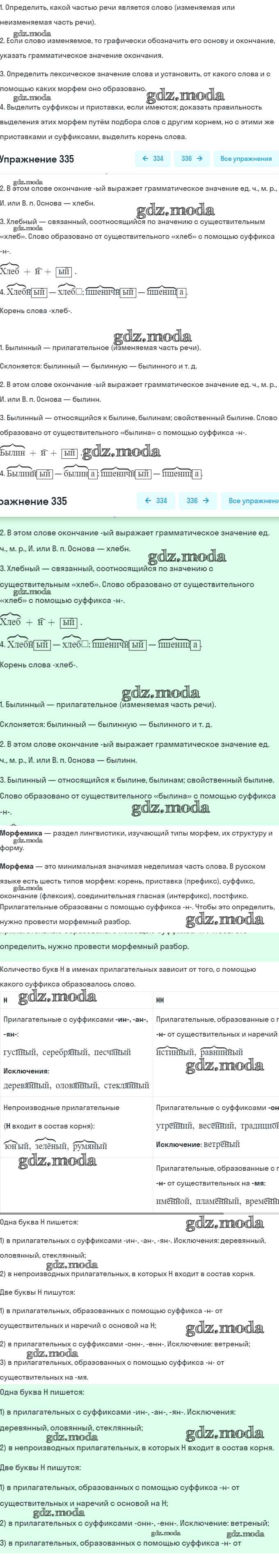 ОТВЕТ на задание № 335 Учебник по Русскому языку 6 класс Рыбченкова