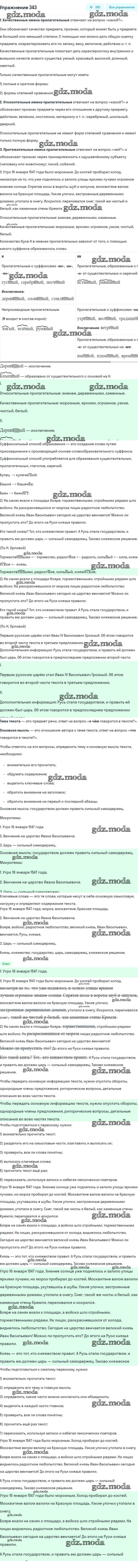 ГДЗ решение к заданию № 343 Русский язык 6 класс Рыбченкова Л.М. Просвещение 2016 Часть 1, Часть 2 ФГОС бесплатно на гдз.мода!